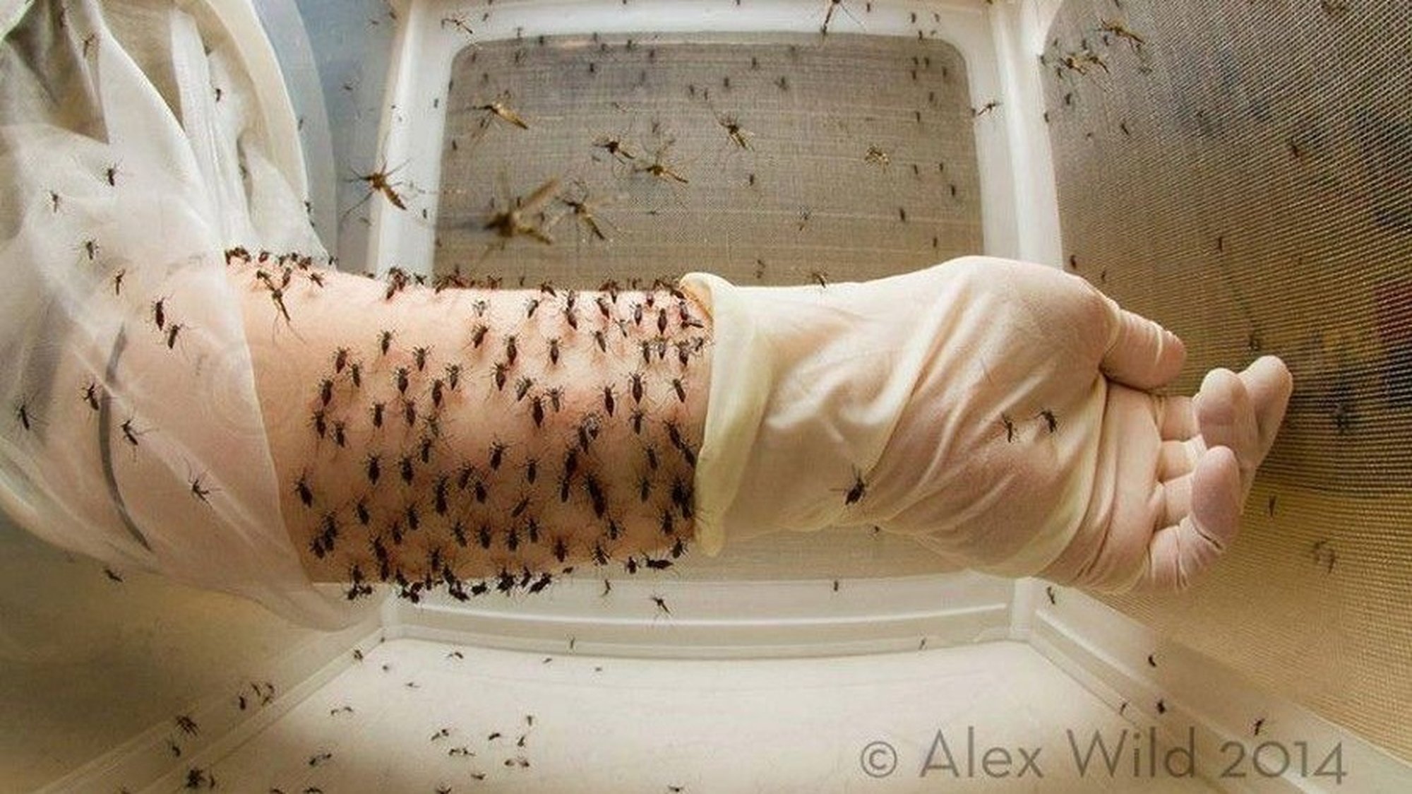 Burada, bilim insanlarının yaptığı fedakarlıkların en harika örneklerinden birisini görüyoruz. Rockefeller Üniversitesi'nden Emily Jane Dennis, üzerinde araştırma yaptığı Aedes aegypti türü sivrisinekleri kendi kanıyla beslemektedir.