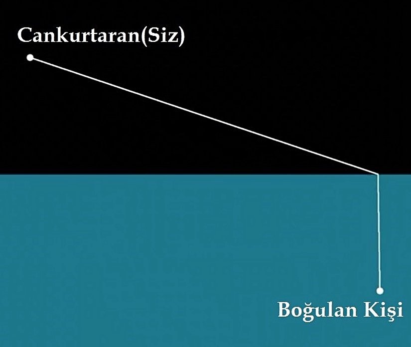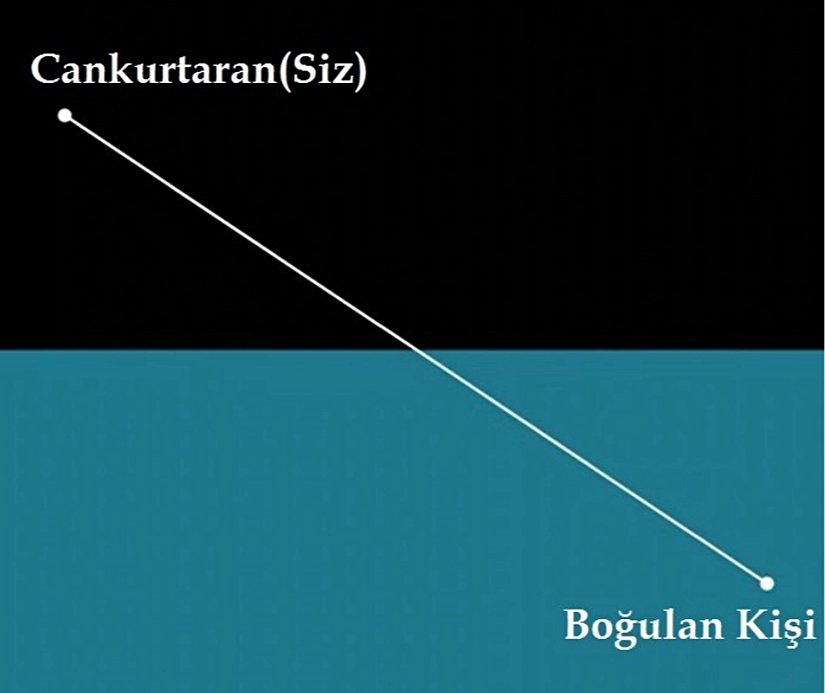 Şimdi bu prensibin üzerinde duralım. Bu prensibi anlamak için verilen en iyi analoji kumsal ve deniz örneğidir. Diyelim ki siz bir cankurtaransınız ve denizde boğulmakta olan bir adama elinizden gelen en çabuk şekilde ulaşmak istiyorsunuz. Peki denizdeki adama hangi yoldan giderseniz en kısa sürede ulaşabilirsiniz?