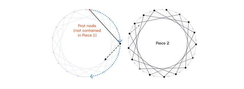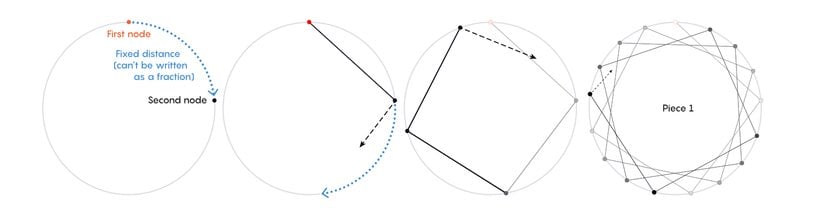 Örneğin dairenin beşte biri kadar yol kat ettiğimizi düşünelim ve iki düğümü bir kenar ile birbirine bağlayalım. Aynı şekilde yine dairenin beşte biri kadar yol alır ve üçüncü düğümü elde ederiz ve ikinci düğüme bir kenar aracılığıyla bağlarız. Bu, böyle devam eder. Her seferinde çemberin beşte biri kadar yol kat edersek başlangıç noktasına geri dönmemiz beş adım sürmektedir. Herhangi bir mesafeyi kat edersek düğümler kapalı bir daire oluşturacaktır.