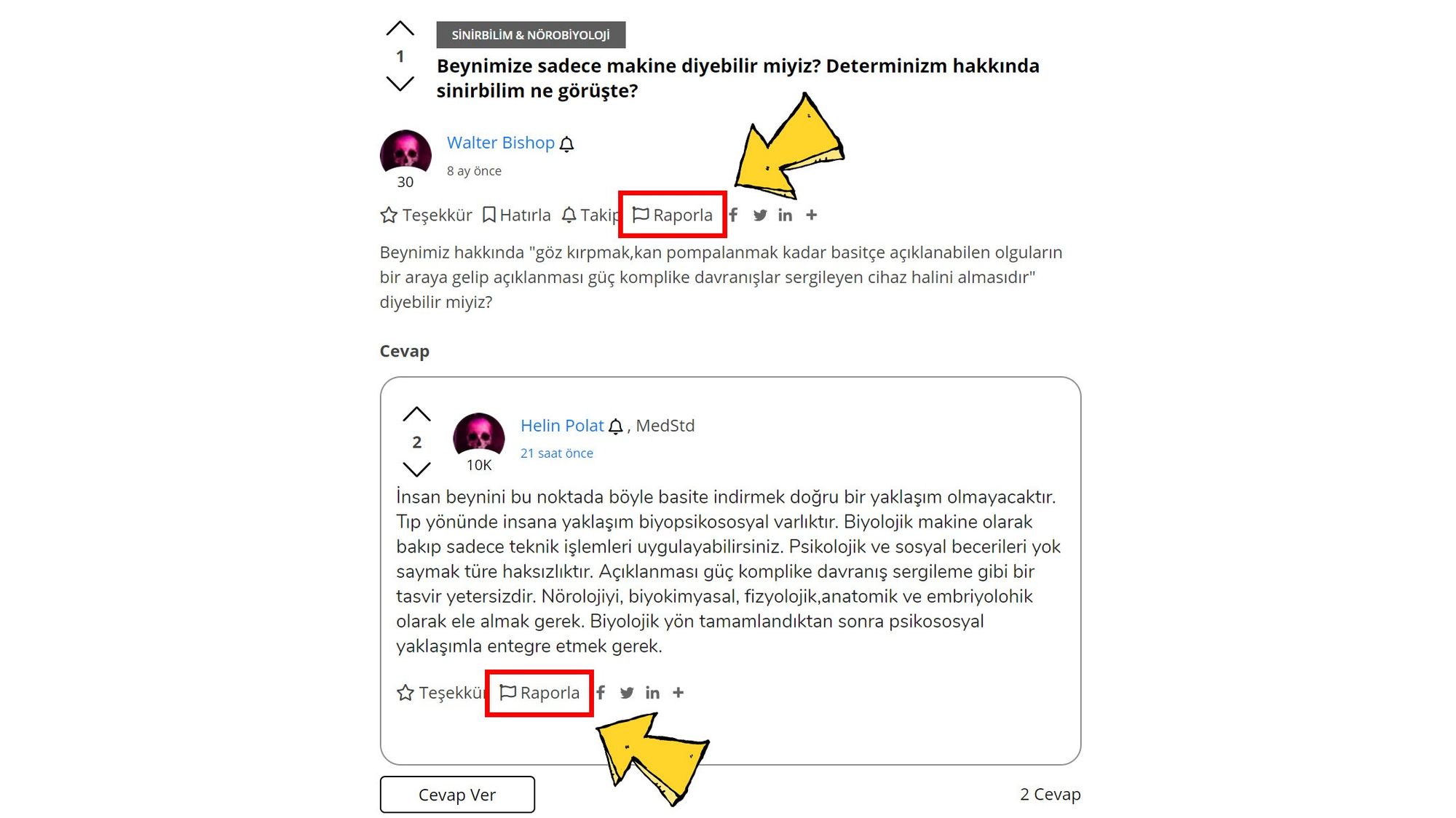 Platformu kullanıcılar için daha faydalı bir hale getirmek ve oluşabilecek hataları hep beraber çözebilmek adına, artık hatalı olduğunu düşündüğünüz bir içeriği raporlamanız mümkün! Tek yapmanız gereken, yukarıdaki tuşlara tıklayarak ilgili bilgileri girmek.