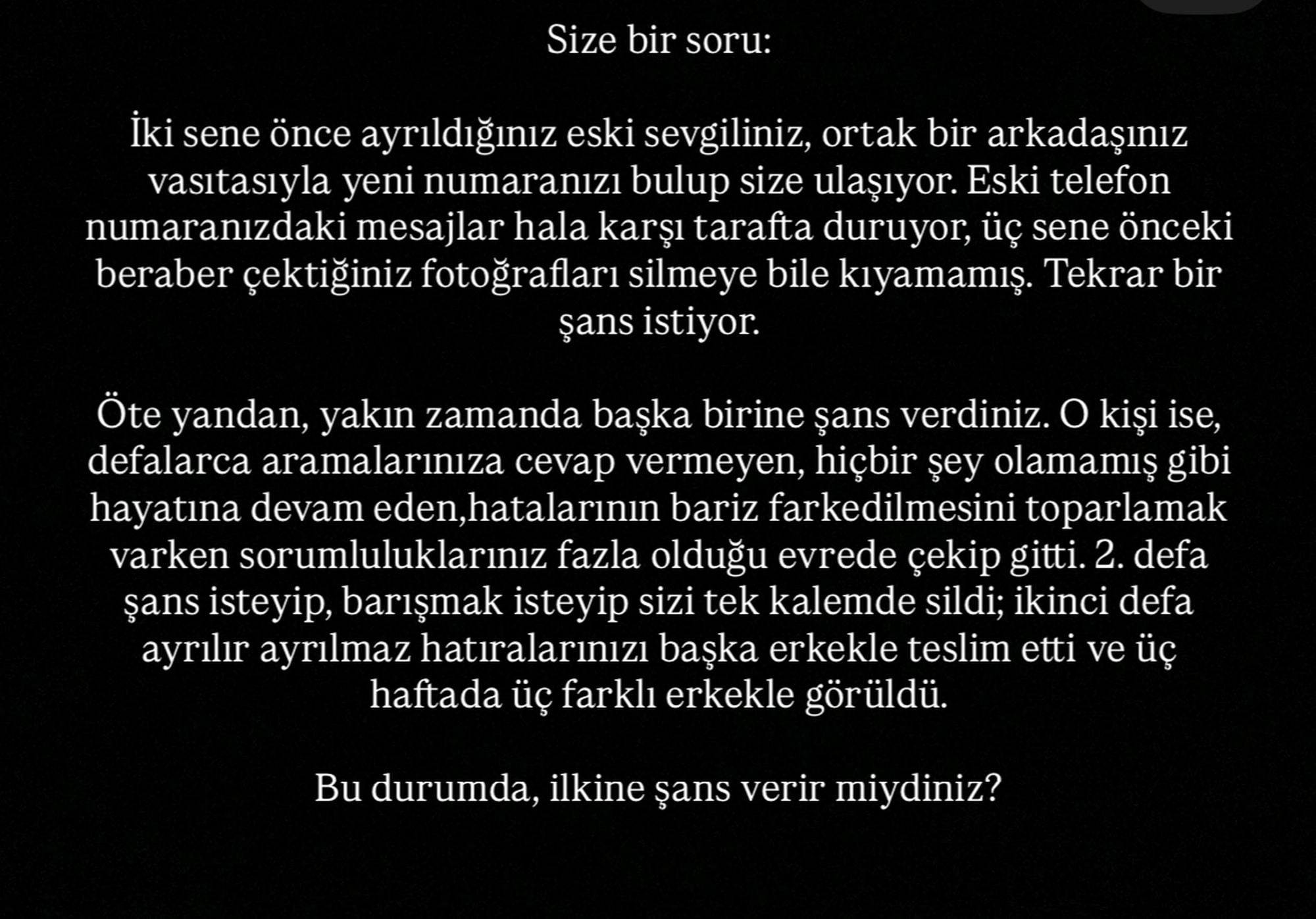 Aklınızdan geçenlerin bu platformda bulunmuyor olabilecek kişilere cevap hakkı doğurmadığından emin olun.