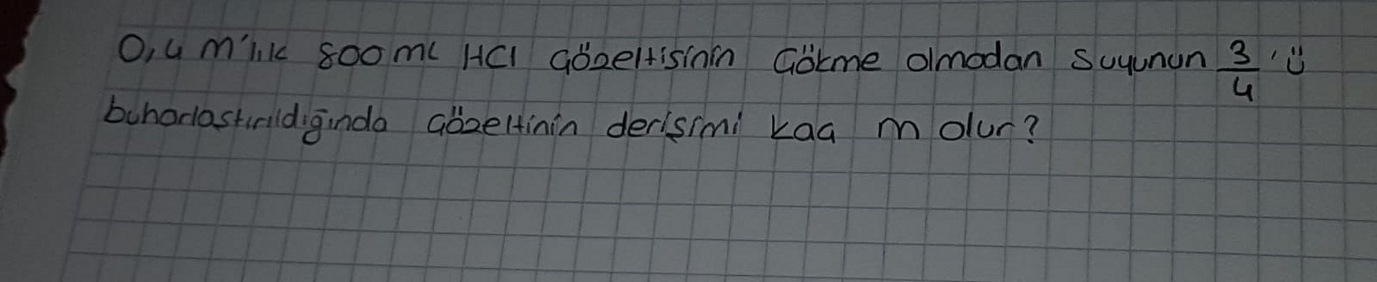 800 ml. 3/4 =600 ml buharlaştırılsa geriye 200 ml kalır (0,2 L)