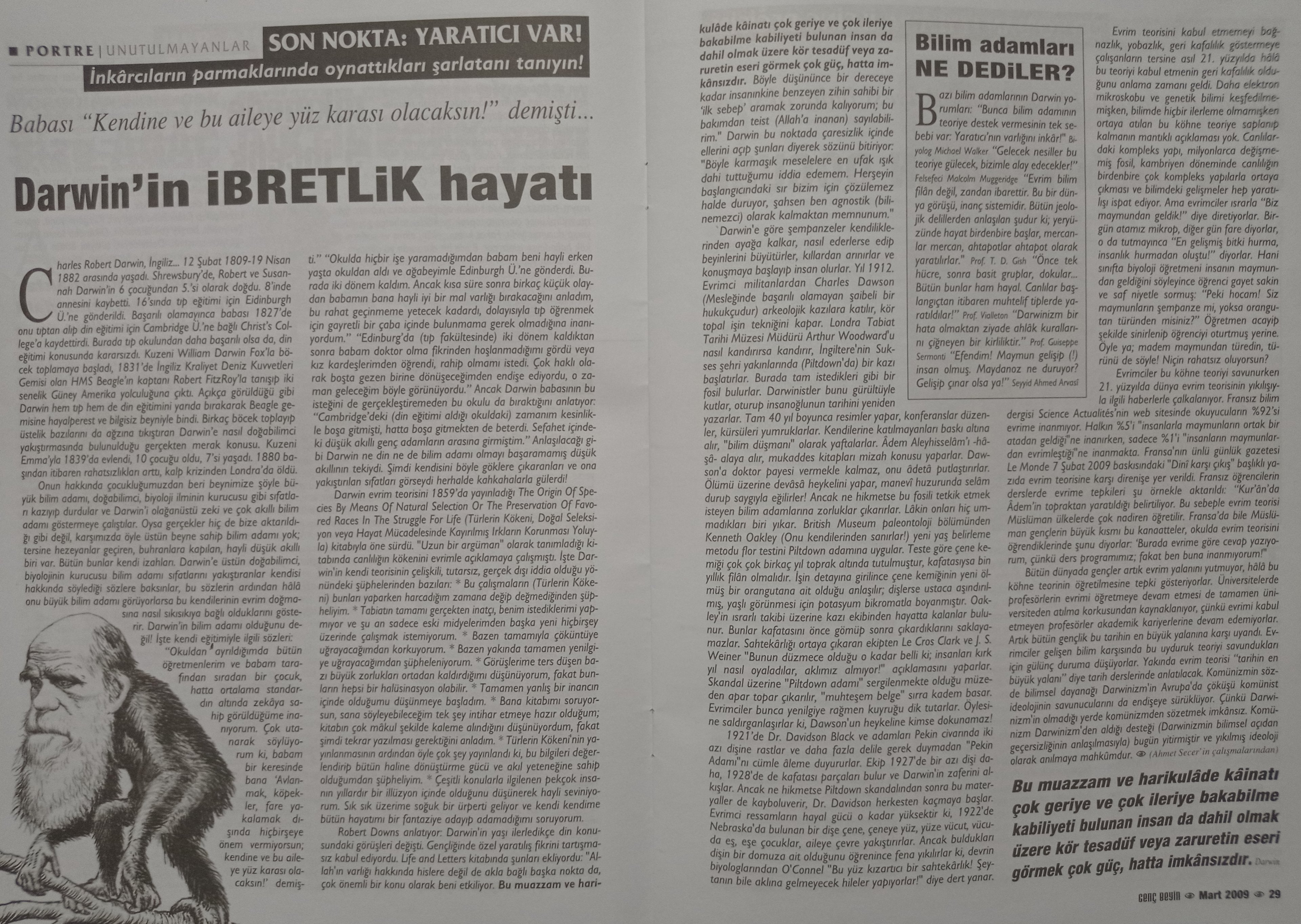 Bu yazı, evrim ile ilgili en ufak fikri olmayan yobaz, dinci ve gericilerin en klasik hatalarla cahilce laf atmaları ile dolu. O kadar nefret dolular ki... Bunu yazan, basan, okuyan ve hatasını anlatmak zorunda kalan kişiler için tam bir zaman ve emek kaybı. Ancak genel bir fikir oluşturmanızı sağlayabilmek açısından yazıyorum.