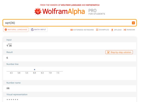 Tam da bu nedenle, yukarıda sayısal olarak sadece 6 sonucunu veren hesap makinemiz ("Wolfram Alpha"), aynı 36\sqrt{36}36 sorusuna grafiksel olarak +6+6+6 ve −6-6−6 olmak üzere 2 adet kök verir:
