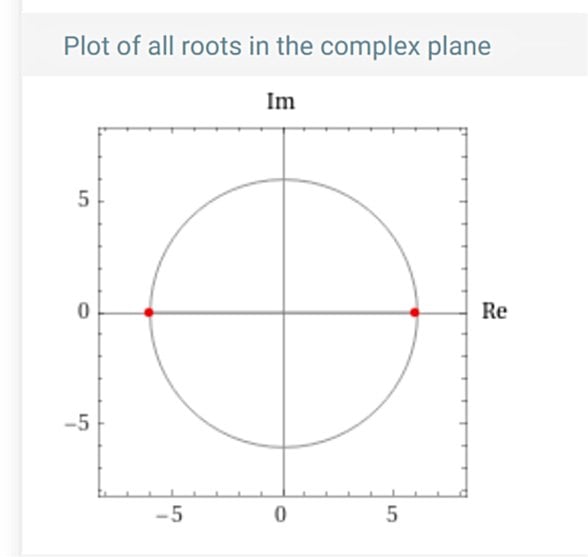 Tam da bu nedenle, yukarıda sayısal olarak sadece 6 sonucunu veren hesap makinemiz ("Wolfram Alpha"), aynı 36\sqrt{36} sorusuna grafiksel olarak +6+6 ve −6-6 olmak üzere 2 adet kök verir: