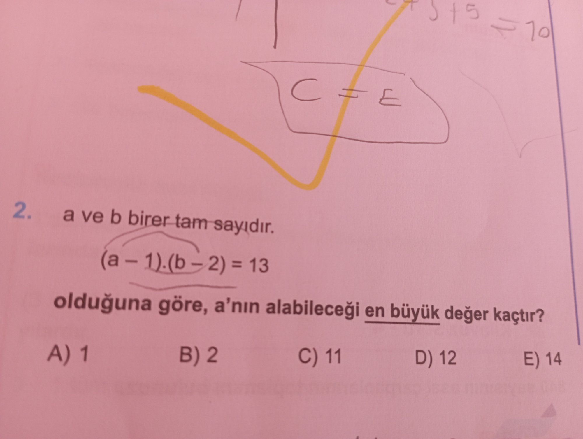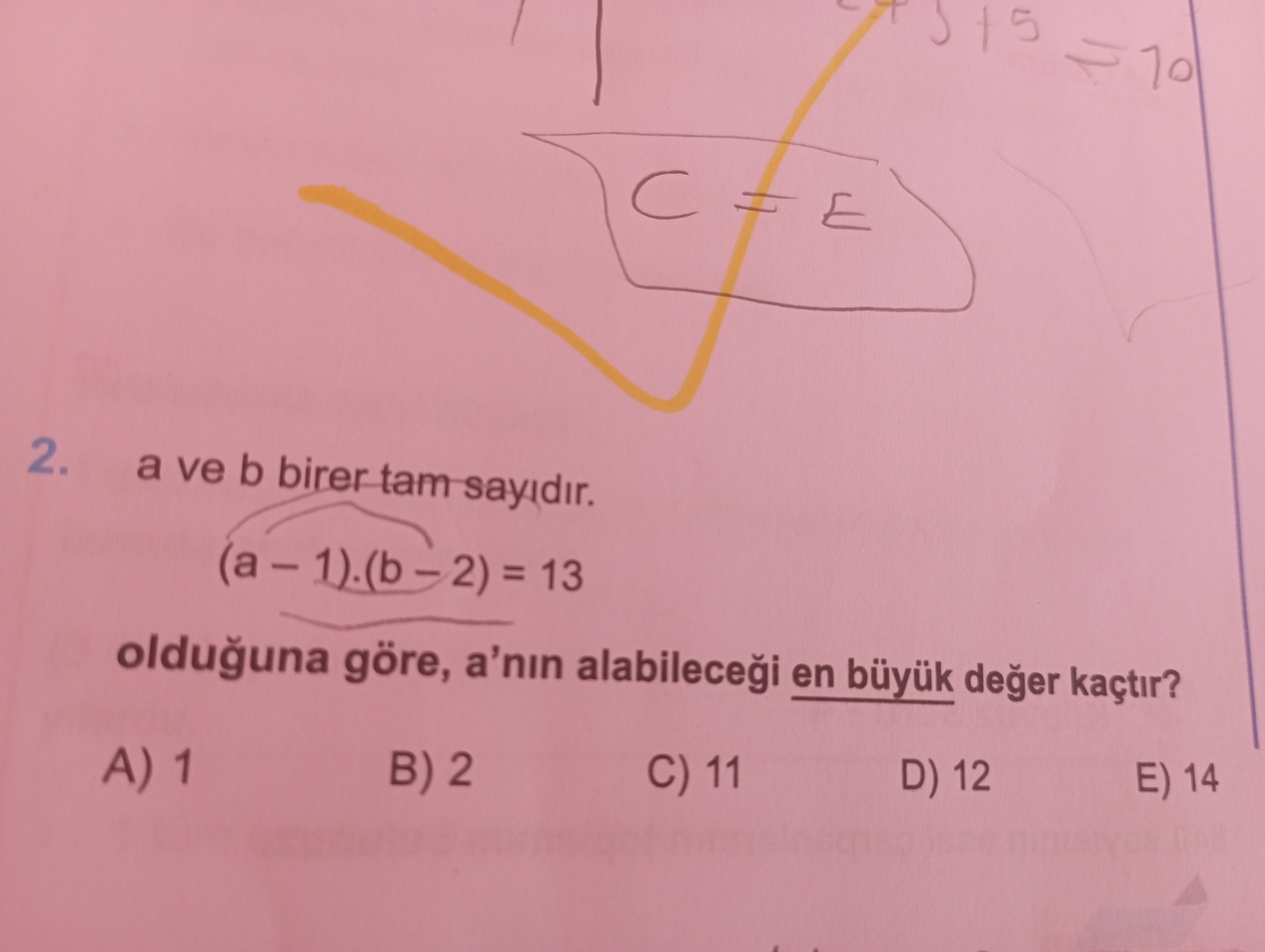 (a - 1).(b - 2)=13 a nın alabileceği en büyük değer nedir?