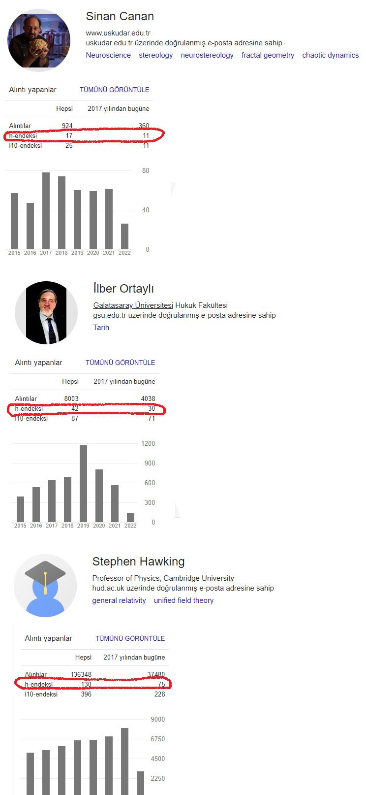 Böyle söyleyince hiçbir şey anlaşılmıyor tabii, örnekle anlatayım. Mesela attığınız görselde ("Hepsi" sütununu dikkate alalım), o h-indeksleri şu anlama geliyor: