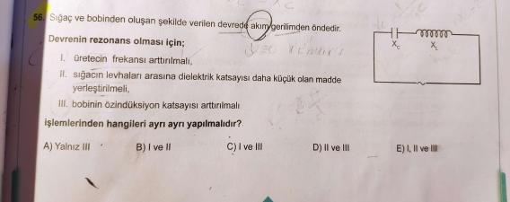 Akım gerilimden önde olunca Xc>Xl deyip öyle çözüyorlar soruyu, neden Xc büyüktür dedik?