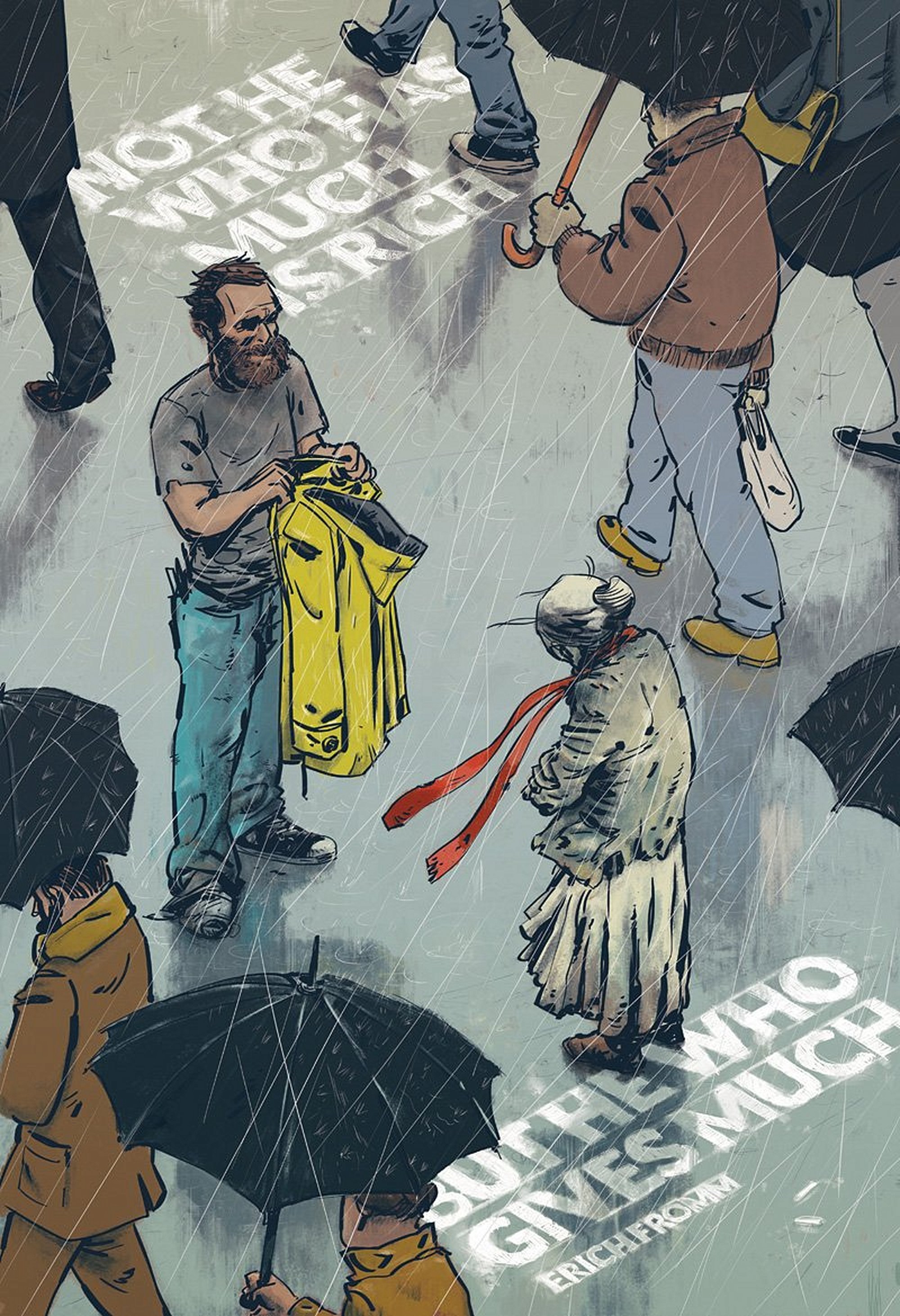 "İnsanlar sevinç aramak yerine, haz ve heyecan arıyorlar; gelişim aramak yerine, güç ve mal mülk arıyorlar" —Erich Fromm (İnsan Olmak Üzerine, s41) İllüstrasyon: Ignacio Serrano