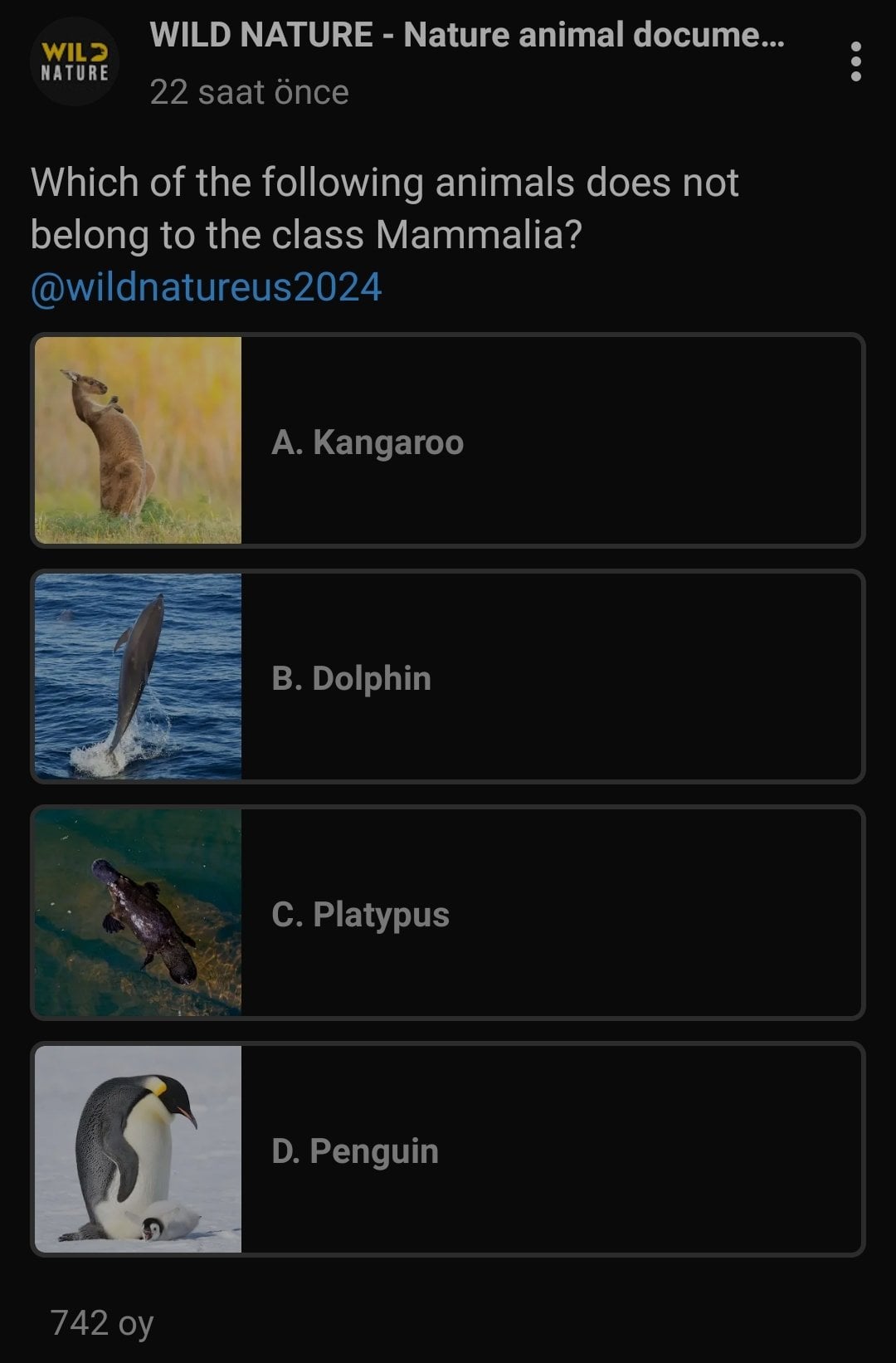 Aşağıda sıralanmış hayvanlardan hangisi memeliler sınıfına ait değildir?