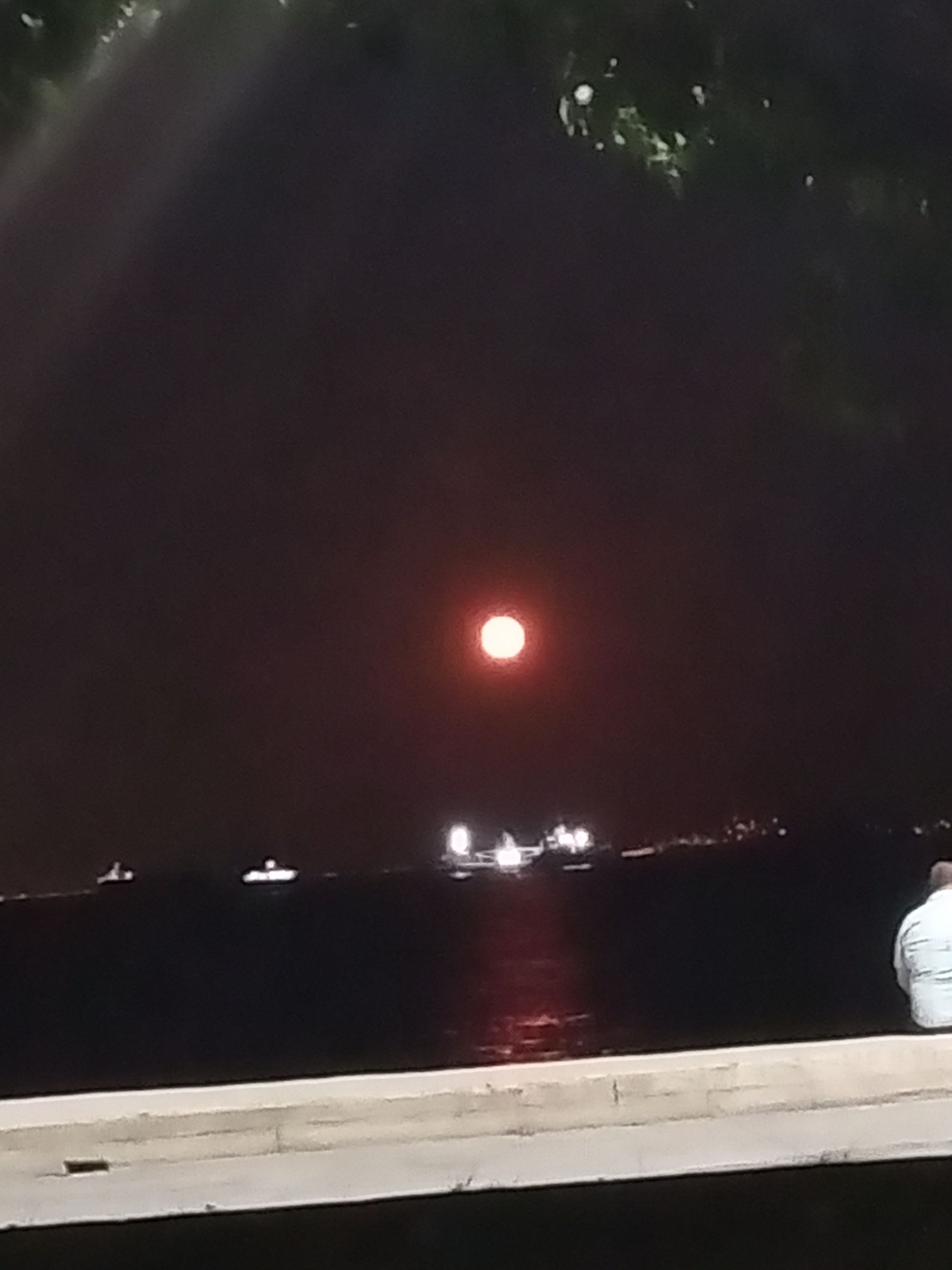 Sadece Ay değil, ufka yakın olan her cisim daha kırmızı görünür. Gün batımı ve doğumunun kırmızı olması da yine aynı sebepten. Bunun nedeni Dünya'nın yuvarlak olması (üzgünüm düz dünyacılar). Dünya yuvarlak olduğu için ufukta görünen bir cismin ışığı, daha fazla atmosfer katmanından geçmek zorunda (görselde sarı çizginin kırmızıdan daha kısa olduğunu görebilirsiniz). Daha fazla geçtiği için de Rayleigh saçılmasından ötürü mavi ışık daha fazla saçılıyor. Eğer beyaz ışıktan maviyi çıkarırsanız, geriye kırmızı kalır. Bu yüzden ufka yakın cisimler daha kırmızı tonlarda görünür. Yukarı çıktıkça renginin beyaza kademeli olarak kaydığını fark edebilirsiniz.[1]