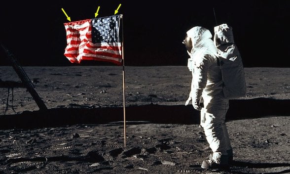 Bu, bayrağın Ay'da düzgün bir şekilde açık kalmayacağını bilen mühendisler tarafından, kasten eklenen bir çubuk. Böylece bayrak dikildiğinde açık kalabilecek ve fotoğraflarda daha düzgün gözükebilecekti.