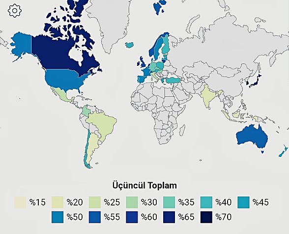 World of Statistics Liste'e (Dünya İstatistik Listesi) göre 7 Temmuz 2023 Yılında en eğitimli ülkelerin başında, %69'la Güney Kore, %66'ya Kanada ve onu da %64'le Japonya... takip ediyor.