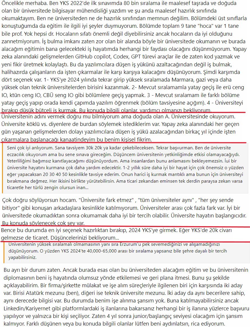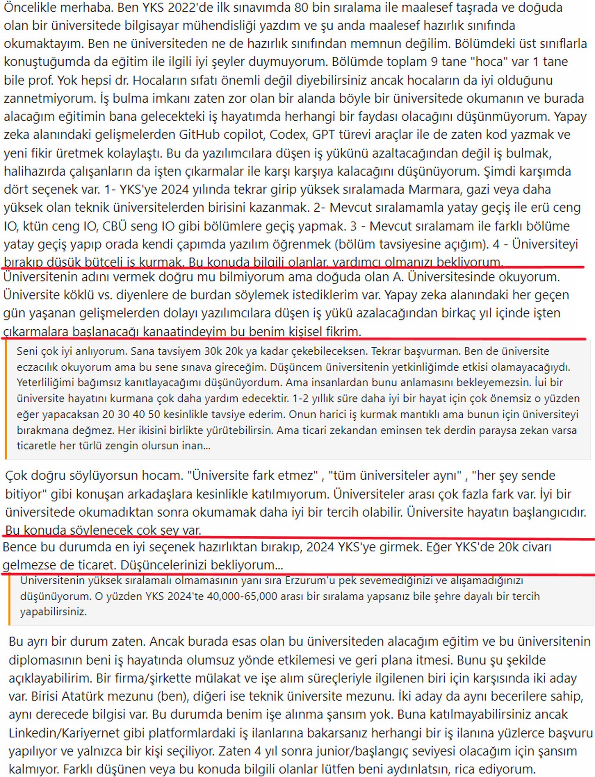 Merhaba. Ben YKS 2022'de ilk sınavımda 80 bin sıralama ile maalesef doğuda olan A. üniversitesinde bilgisayar mühendisliği yazdım ve şu anda maalesef hazırlık sınıfında okumaktayım. Ben ne üniversiteden ne de hazırlık sınıfından memnun değilim. Bu konuda bana yardımcı olabilir misiniz? Bu sorumun devamı görselde (farklı bir forumdaki cevaplarım)