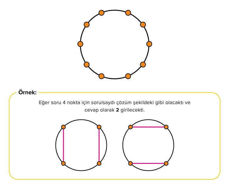 Bir çember üzerinde 10 nokta var bu noktaları doğrular çizerek birbirine bağlayacak ve nokta çiftleri oluşturacaksınız kaç farklı şekilde oluşturulur?