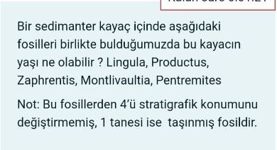 bir sedimanter kayaç içinde aşağıdaki fosilleri birlikte bulduğumuzda bu kayacın yaşı ne olabilir?