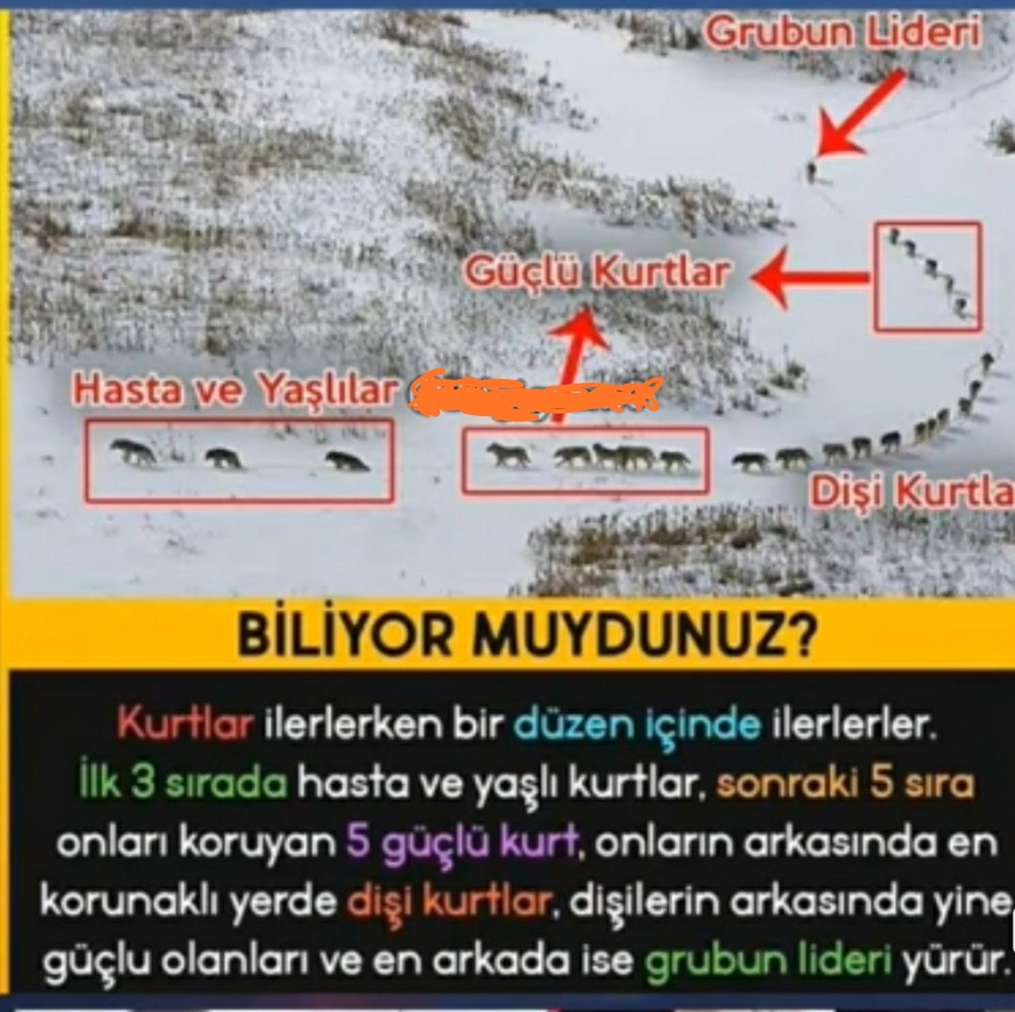 Hayır, görseldeki iddiaların herhangi bir doğruluğu yok. Görsel ve görseldeki iddialar hakkında, Evrim Ağacı’nın “Kurt Sürüsünün Lideri En Arkadan mı Gelir?” başlıklı yazısını okuyabilirsiniz.