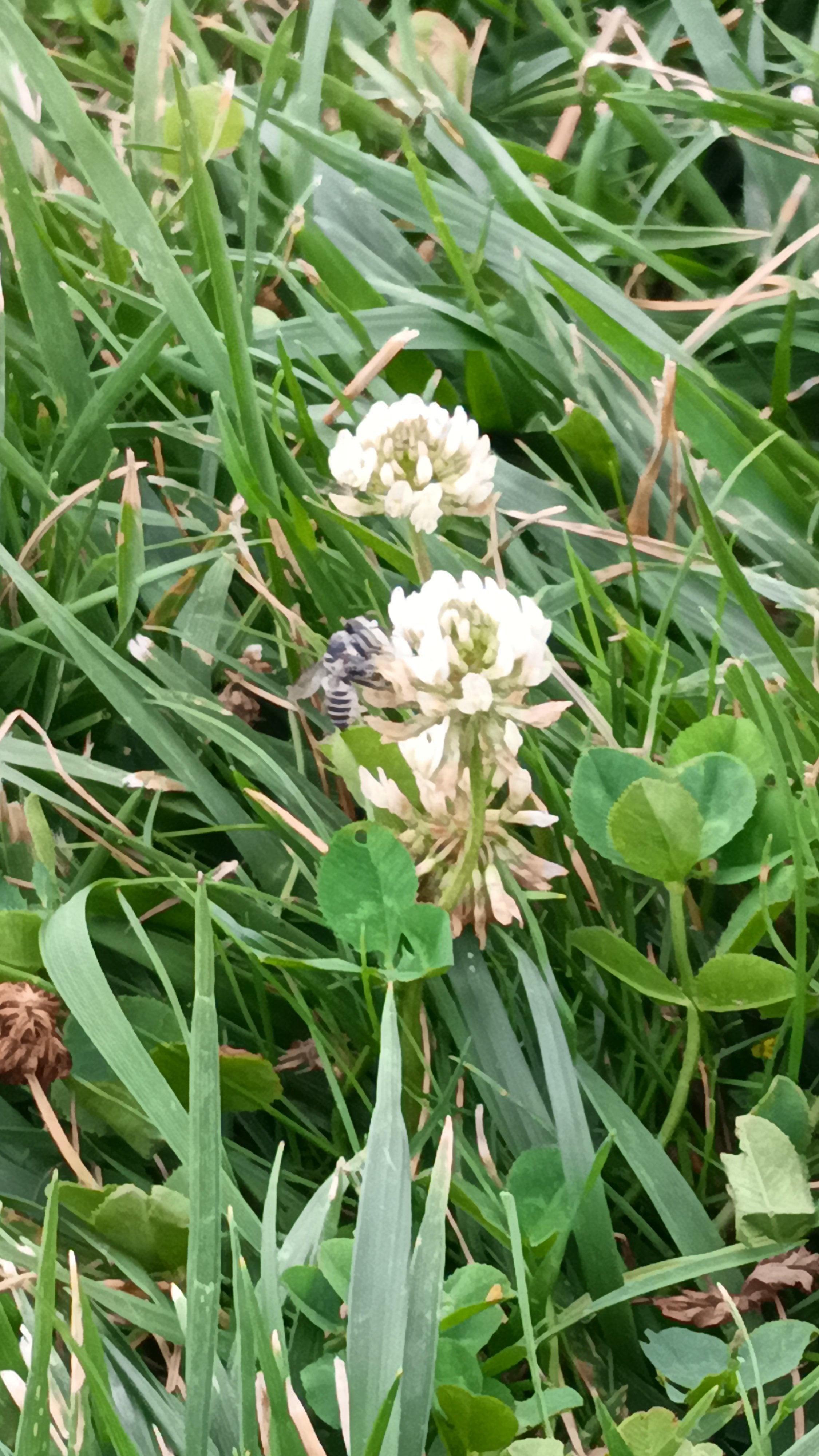 Fotoğraf çok net değil emin olmamakla birlikte 'Amegilla albigena' olabilir.[1] Apidae(Bal arıları) familyasının apoid bir hymenopteran'dır.[2] Albinizm insanları ya da her çeşit hayvanı etkileyebilecek, melanin pigmentinin eksikliğinden veya yokluğundan kaynaklanan bir genetik mutasyondur. Yani olma ihtimali var.