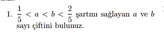 O zaman yeni hâli şu olur: 3/15 < a < b < 6/15