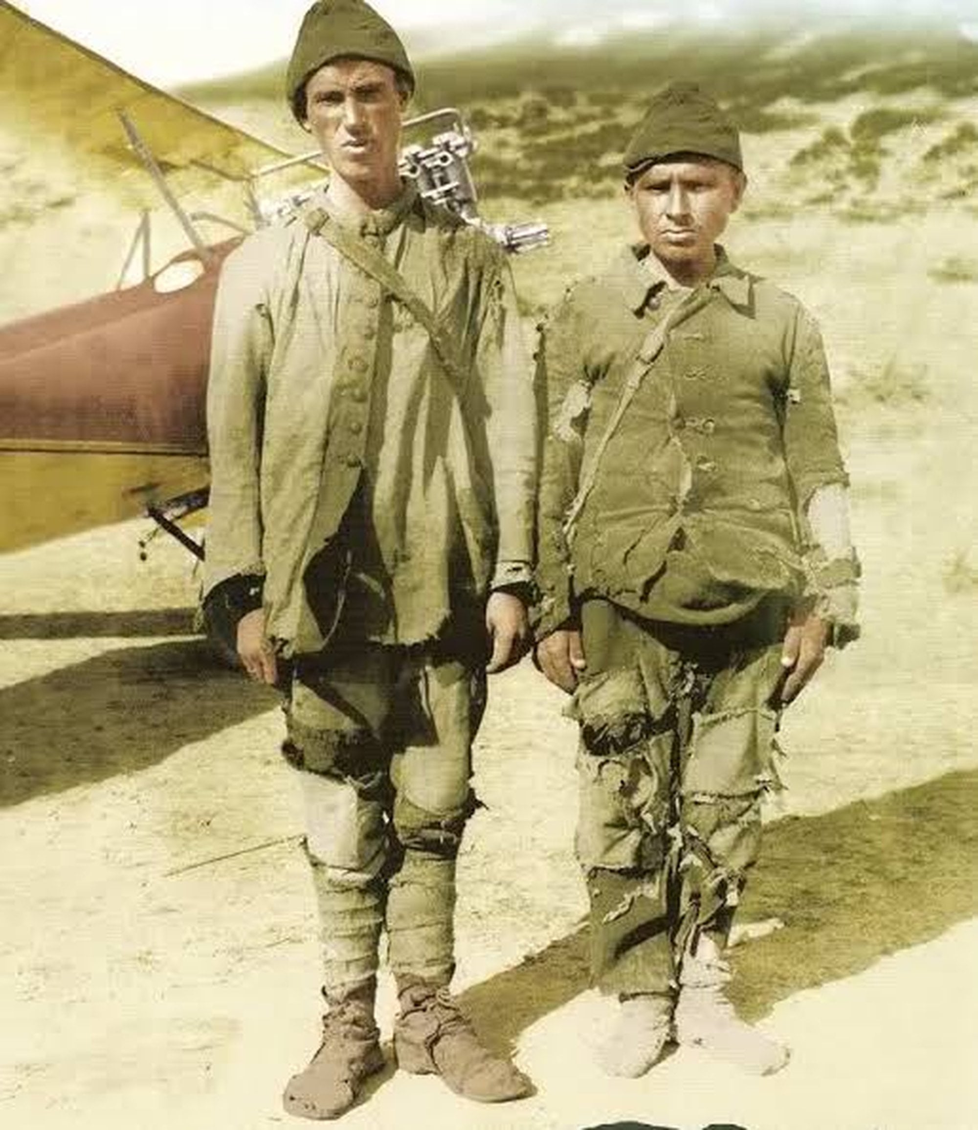 “Babamın o fotoğraf ile savaşın simgesi haline geldiğini öğrendim. Ancak babam 1911 doğumlu. Yani Çanakkale Savaşı başladığında 4 yaşındaydı. O fotoğraf babam Çiğli Havaalanı’nda işçi olarak çalışırken çekilmiş.” Demiştir. Bu iki kişi Çiğli Hava Üssü’nde çalışan işçilerdir.