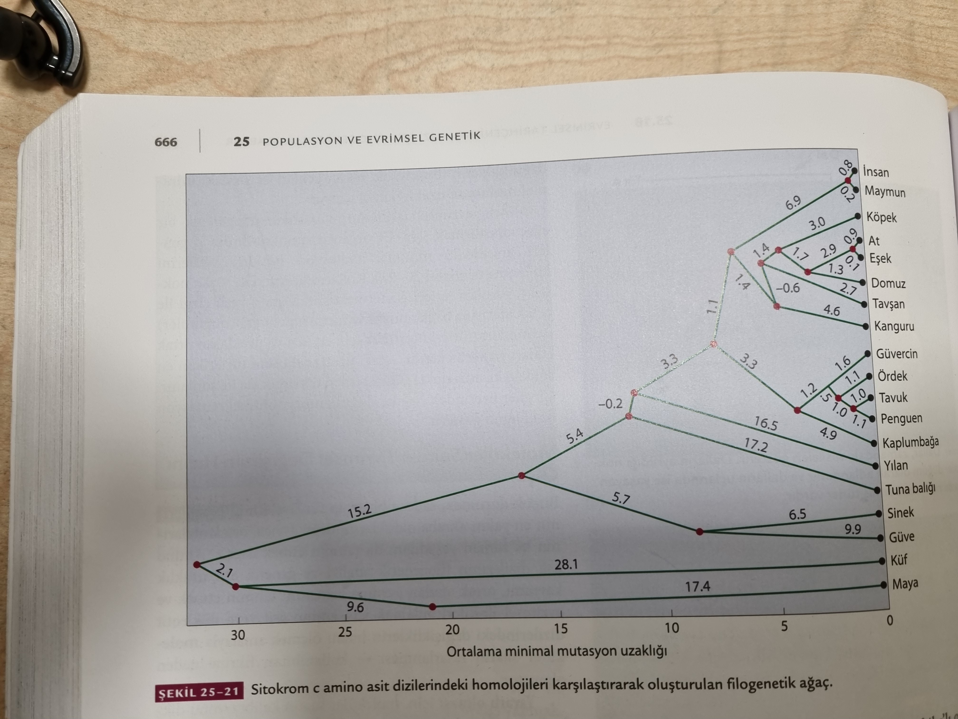 Arkadaşlar altta yazan sitokrom c ne oluyor ? Onu kullanarak nasıl filogeni ağacı oluşturuyorlar? yine altta yazan minimal mutasyon uzaklığı nedir ? grafikteki sayılar neyi temsil ediyor ve nasıl yorumlanmasi gerekli ?