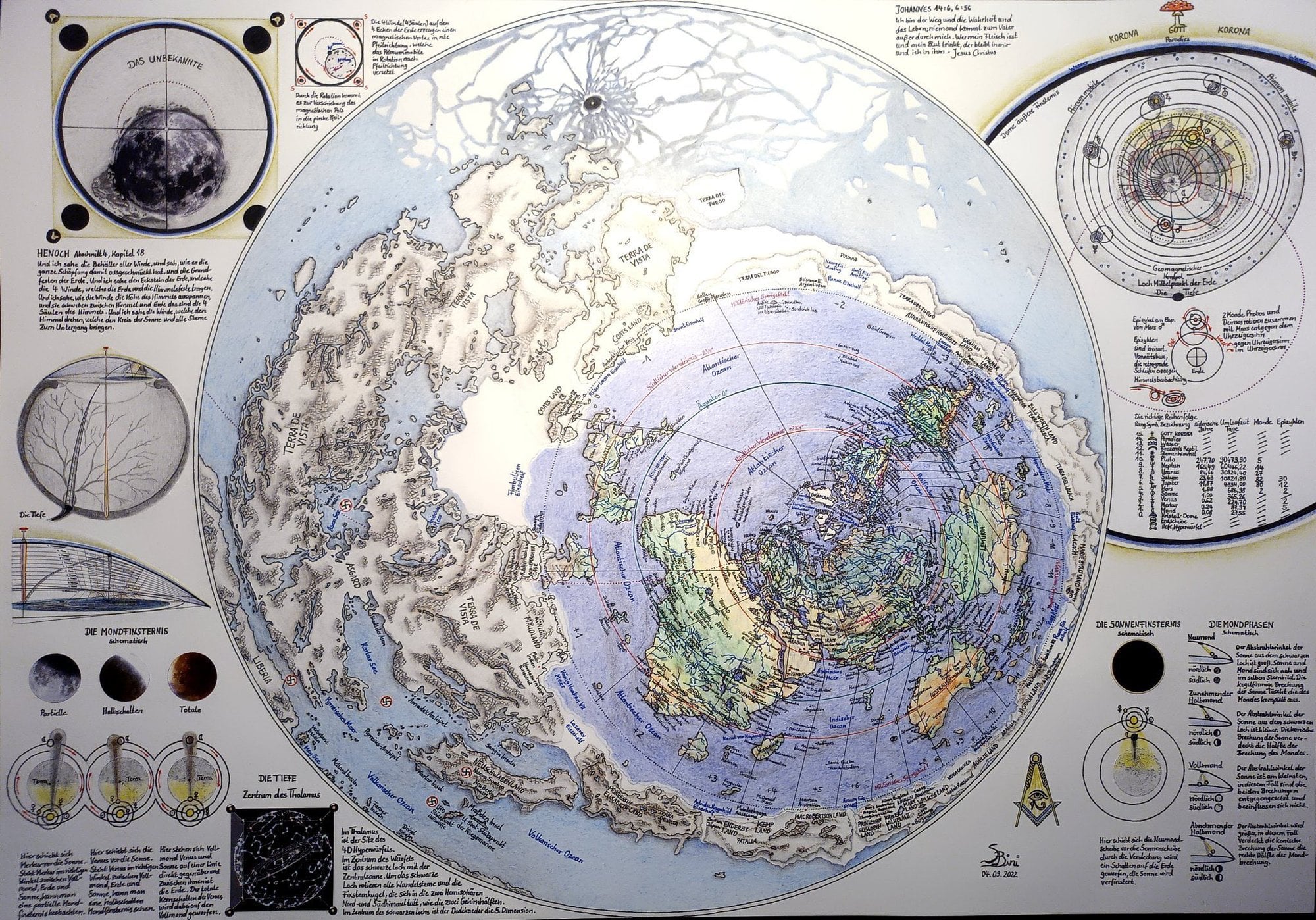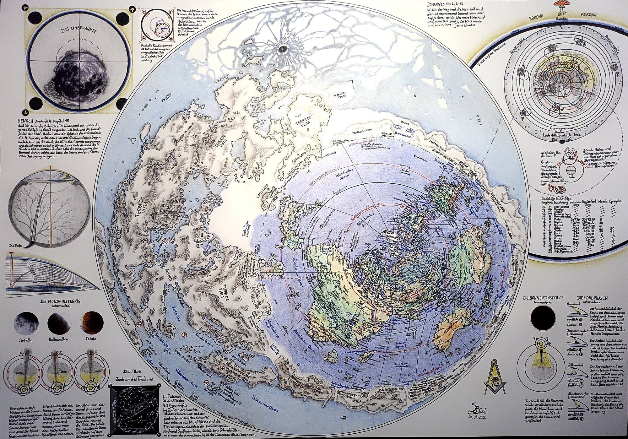 Örneğin ekvatorun sıcak, kutupların soğuk olması; eksen eğikliği ve mevsimler gibi olayları bu şekil ile açıklamak mümkün değil. Uzun uçuşlarda uçakların rotasının haritalarda bozuk görünmesi, hatta binlerce yıldır bildiğimiz gibi dünyanın yarısında gece, yarısında gündüz olması bu haritanın gerçekliğini imkansız kılmaya yeter.
