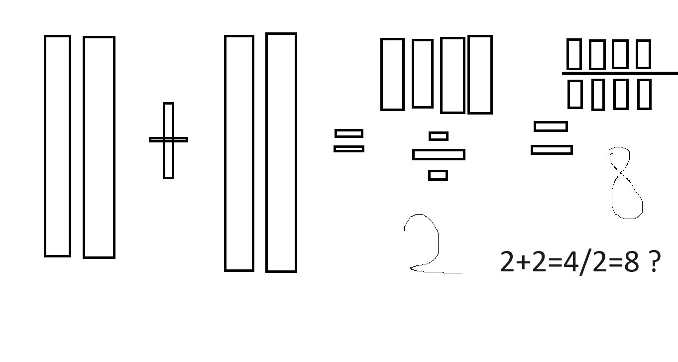 Örneğin ''....'' bunu ikiye bölersen ''..'' ve ''..'' elde edersin ve bunlardan birisi sonuçtur(yani ''..''). Ama sen bunu şöyle alıp ''.. ..'' iki parçayı gene toplamışsın. Hatta daha da ileri gidip ''||'' bunu günlük hayatta kullandığımız bölme kelimesi ile(keserek, kopararak ayırma)'' ıı ıı'' şeklinde ele almışsın. Matematikteki bölmeyi ve Türkçe'deki bölmeyi bir birine karıştırmışsın.