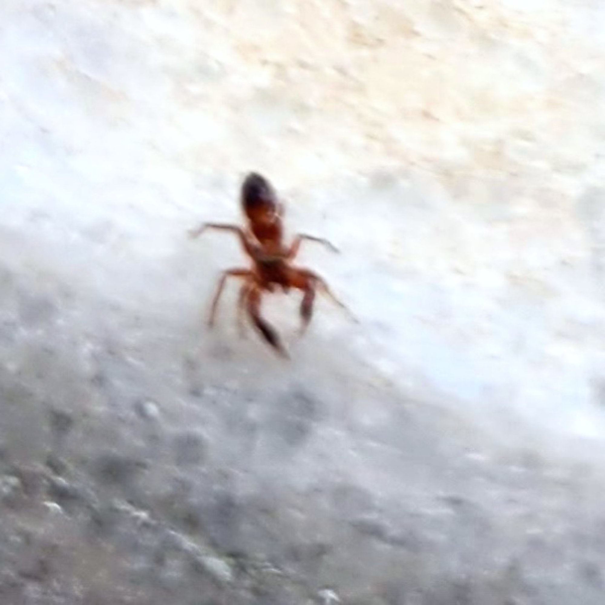 Kendisi bir karınca olmayabilir.Görüntü biraz bulanık ama tahminimce bu bir akrep olabilir/Sarı akrep yavrusu gibide geliyor ama bu konu hakkında çok bir bilgim olmadığı için seni yanlış yönlendirmek istemem rengi sarı değil ama büyüyünce sarılaşıyor galiba daha önce ufak öyle bir akrep gördüm ama bu o mu doğrulamamam.Ya da atlı karınca olabilir