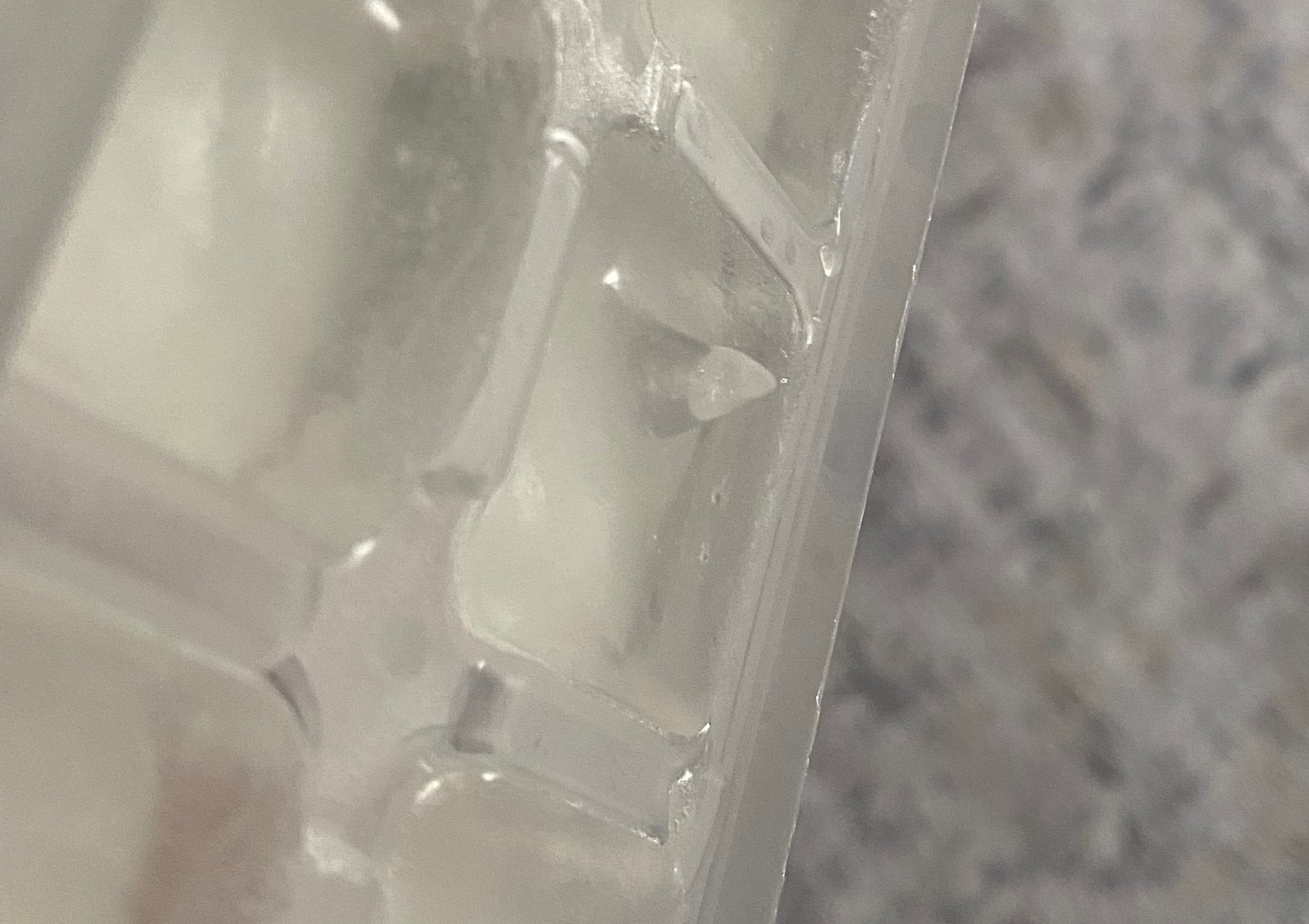 dostum yüksek ihtimalle donduktan sonra buzluğun içinde damlama olmuştur. çünkü farkettiysen sadece 1 tane bölmede tepe oluşmuş. diğerleri düzlük. o bir bölmeye rasgele bir şeyden su damladı, o su damlası dondu, onun üzerine tekrar damladı ve döngü şeklinde devam etti. ağzı açık ürün oldugunun da göstergesi olabilir bu, dikkat edin yicekler çöp olmasın.