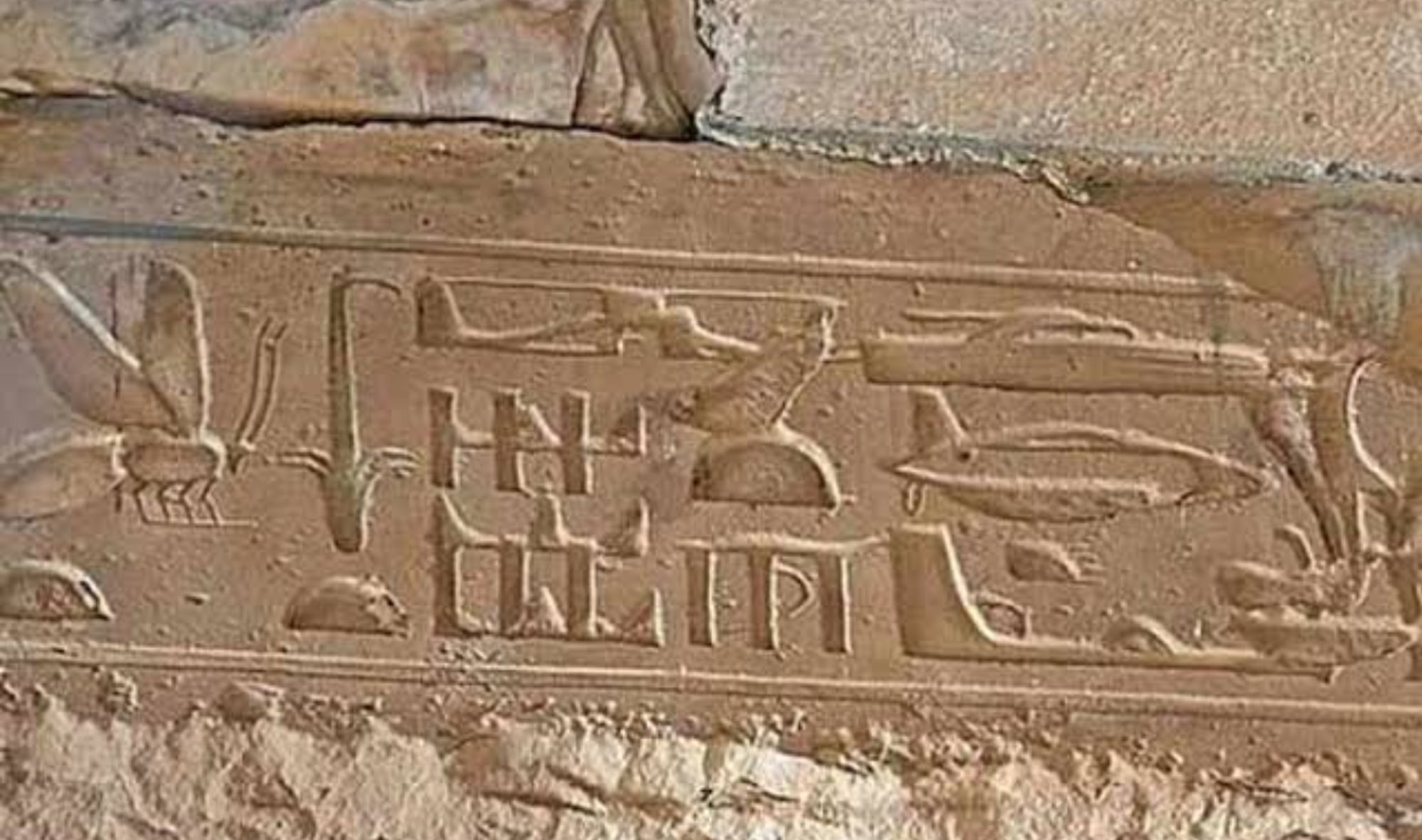 bu resimde gördüğün şey aslında Hiyeroglif denilen antik yazıların üst üste çakışmasıdır. ilk olarak Firavun 1. Seti'nin döneminde yani yaklaşık MÖ1294 yılında ilk oyma yapılmış "9 Mısır düşmanını püskürten yiğit" olarak tercüme edildi. ardından firavun olan Firavun 2. Ramses döneminde tarih yaklaşık MÖ1250 tekrar, aynı taş üzerinde bir oyulma yapılmıştır "Mısır'ı koruyan ve yabancı ülkeleri deviren savaşçı" olarak tercüme edilmiştir.