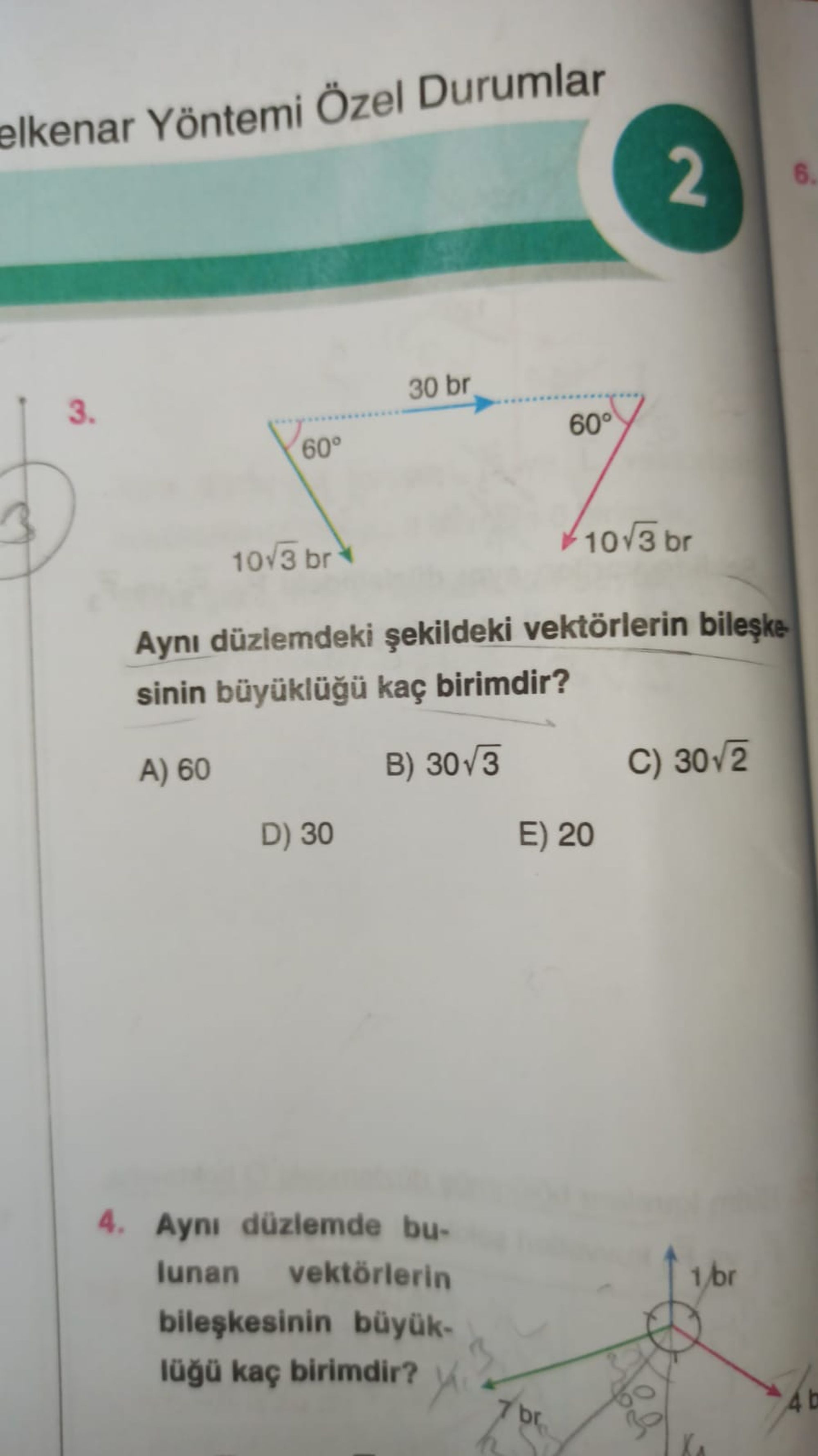 10√3.√3=30birim buluruz ve yönü aşağı olacak şekilde çıkar. bir tane de sağa doğru 30birimlik vektörümüz vardı. Bu ikisini de uç uca eklersek, aralarındaki açı 90° olur.