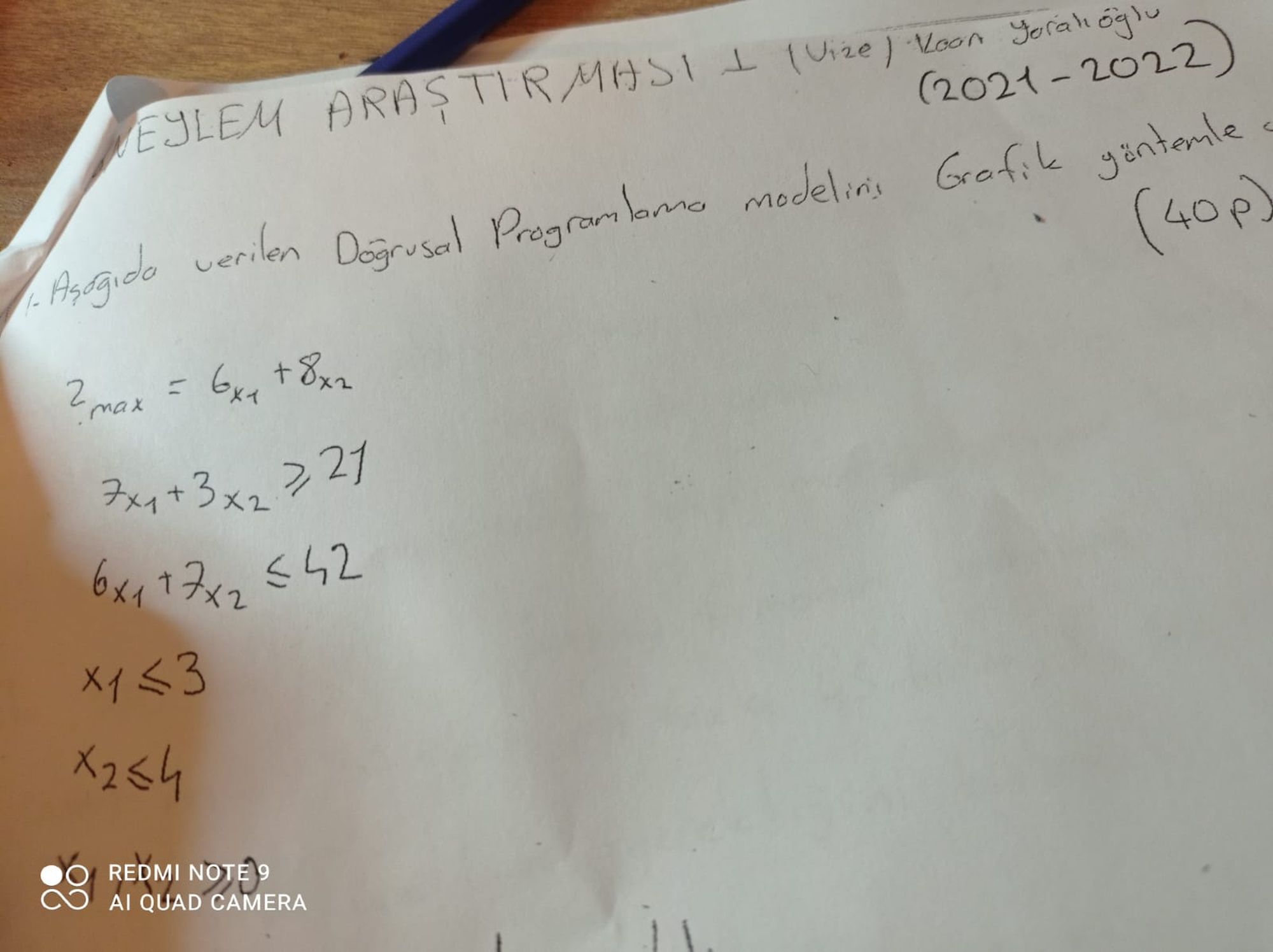 Önce amaç fonksiyonunu belirtelim: