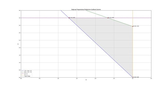 Tüm kısıtların kesiştiği bölge bizim uygun çözüm alanımız. Bu bölgedeki köşe noktalar maksimum değer için adaylarımız.