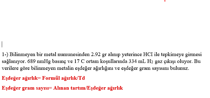 Bu verilere göre bilinmeyen metalin eşdeğer ağırlığı ve eşdeğer gram sayısı nedir?