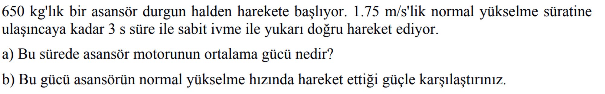 Buna göre asansör motorunun ortalama gücü nedir?