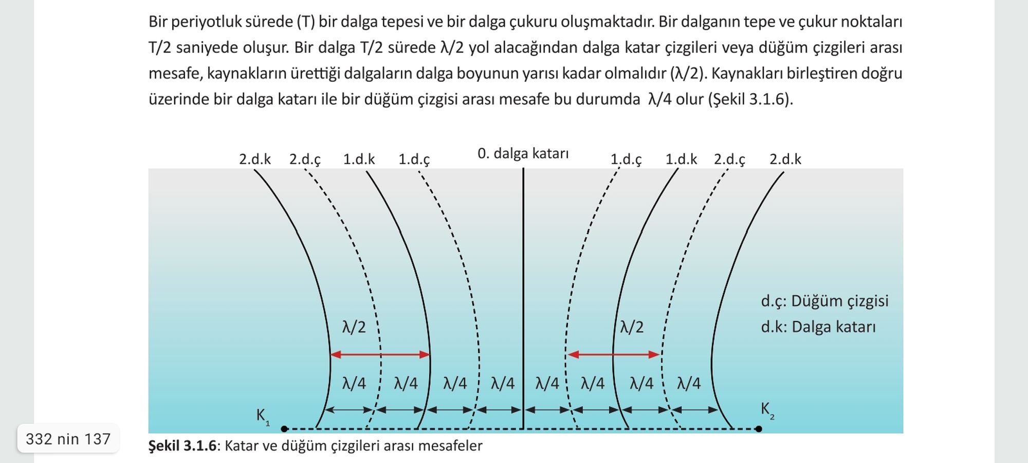 Buradaki gösterilen dalgalar "Aynı Fazda" olduğu için aralıkları bellidir ve bir dalga tepesi ile bir başka dalga tepesi veyahutta bir dalga ile başka bir dalga arasındaki mesafeye eğer ki aynı fazda ise "lambda" sembolünü kullanırız ve burada yüzden lambda sembolü kullanılarak dalga katarı ve dalga düğümü hesaplamaları yaparız