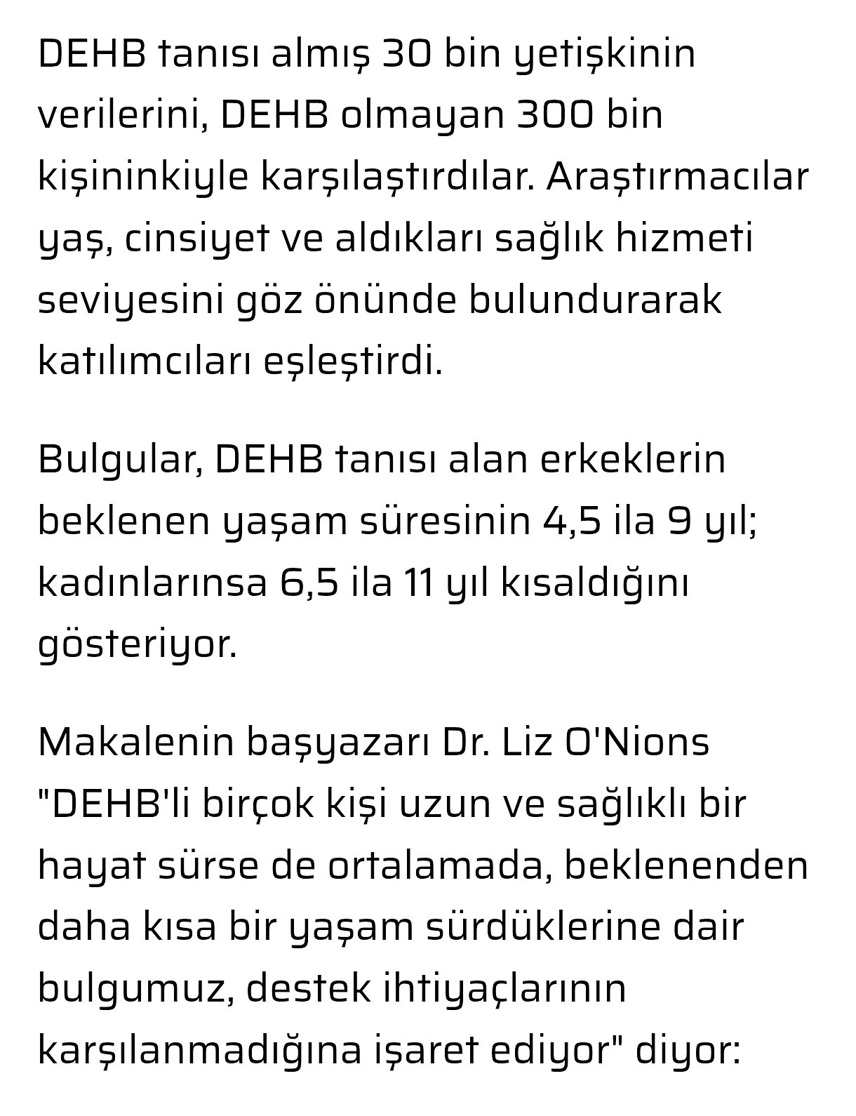 Bir makalede gördüğüm kadarıyla dehb tanısı koyulmuş bireylerin tahmin edilenden çok daha kısa yaşadığını söylüyorlar bunu görsem umursamadan geçerdim ama BENDEDE VAR yaş ortalaması falan vermemişler umarım yarım asırdan fazla yaşarım bu araştırmayı bilen biri yardımcı olabilirmi?