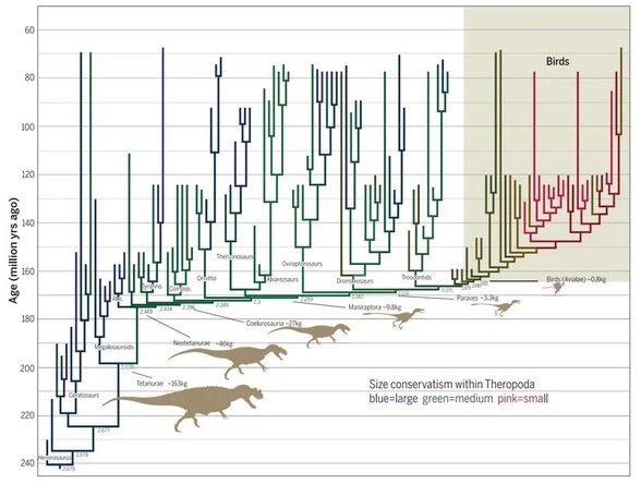 - Çevirmen Ç.M. Bakırcı. Dinozorlar Kuşlara Evrimleşirken Düzenli Olarak Küçüldüler!. (22 Eylül 2014). Alındığı Tarih: 8 Kasım 2020. Alındığı Yer: Evrim Ağacı | Arşiv Bağlantısı