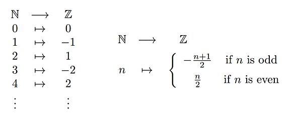 Sonsuz kümelerin denkliğini ilk kez matematikçi Georg Cantor ortaya attı. Buna göre eğer iki sonsuz küme arasında bire bir eşleme yapılabiliyorsa o iki sonsuz küme bir birine denktir. Buna kümelerin kardinalitesi denir. Örneğin doğal sayılar kümesi ile tam sayılar kümesi her ne kadar sezgisel olarak öyle görünmese de denktir. Doğal sayılar ile tam sayıları şu şekilde eşleyebiliriz: