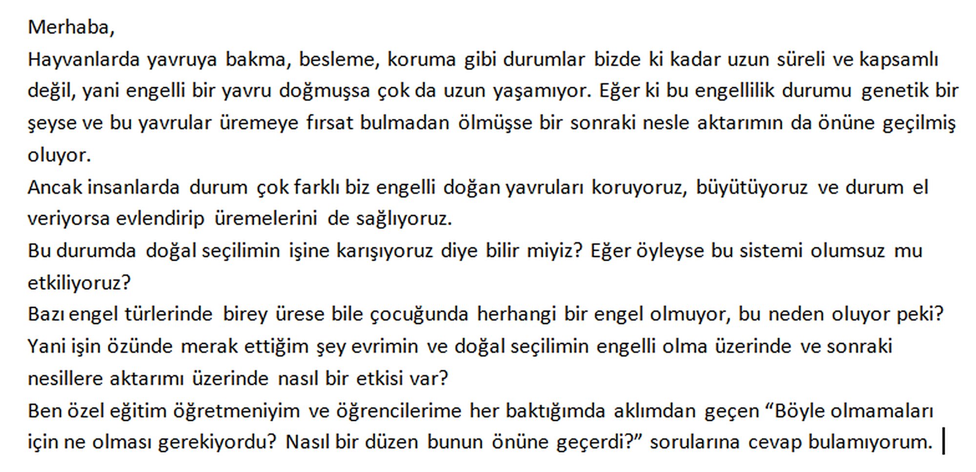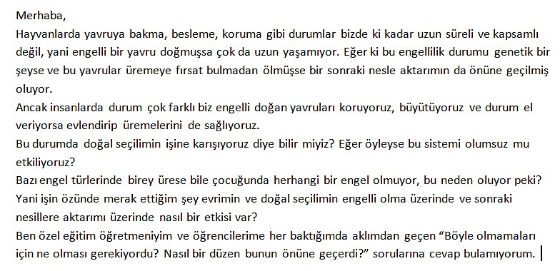 Evrim Ağacı bir bilim platformudur. Dolayısıyla aklınızdan geçen her şeyden ziyade, bilim veya yaşamla ilgili olabilecek düşüncelerinizle ilgileniyoruz.