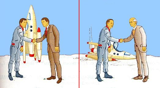 Bir başka deyişle, dünya üzerindeki bir kişi, roketin içinde bir kahvenin yavaş yavaş soğuduğunu fark ederken, roketin içindekiler de dünya üzerindekilerin ağır çekimde hareket ettiğini gözlemler. Bu tuhaflık, Einstein’ın izafiyet teorisinin temel taşlarından biridir: Her iki taraf da birbirinin saatlerinin yavaşladığını düşünür ve bu çelişki, sadece tekrar bir araya geldiklerinde çözülebilir. İşte bu, ünlü "ikizler paradoksu"nun da temelidir.