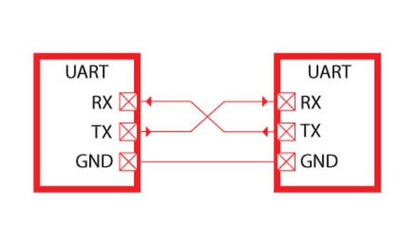 UART, asenkron seri iletişim protokolüdür ve bir iletişim hattı üzerinden iki cihaz arasında veri alışverişini sağlar. Bu protokolde veri gönderimi için herhangi bir saat sinyali kullanılmaz, veriler start biti, veri bitleri, opsiyonel olarak bir parite biti ve stop bitiyle birlikte paketlenerek gönderilir. Gönderici ve alıcı cihazlar arasında hız ve diğer ayarlar önceden belirlenmelidir. UART, kablosuz haberleşme modülleri, Bluetooth modülleri ve GSM/GPRS modülleri gibi cihazlar arasında seri veri iletişimi için kullanılır.[3]