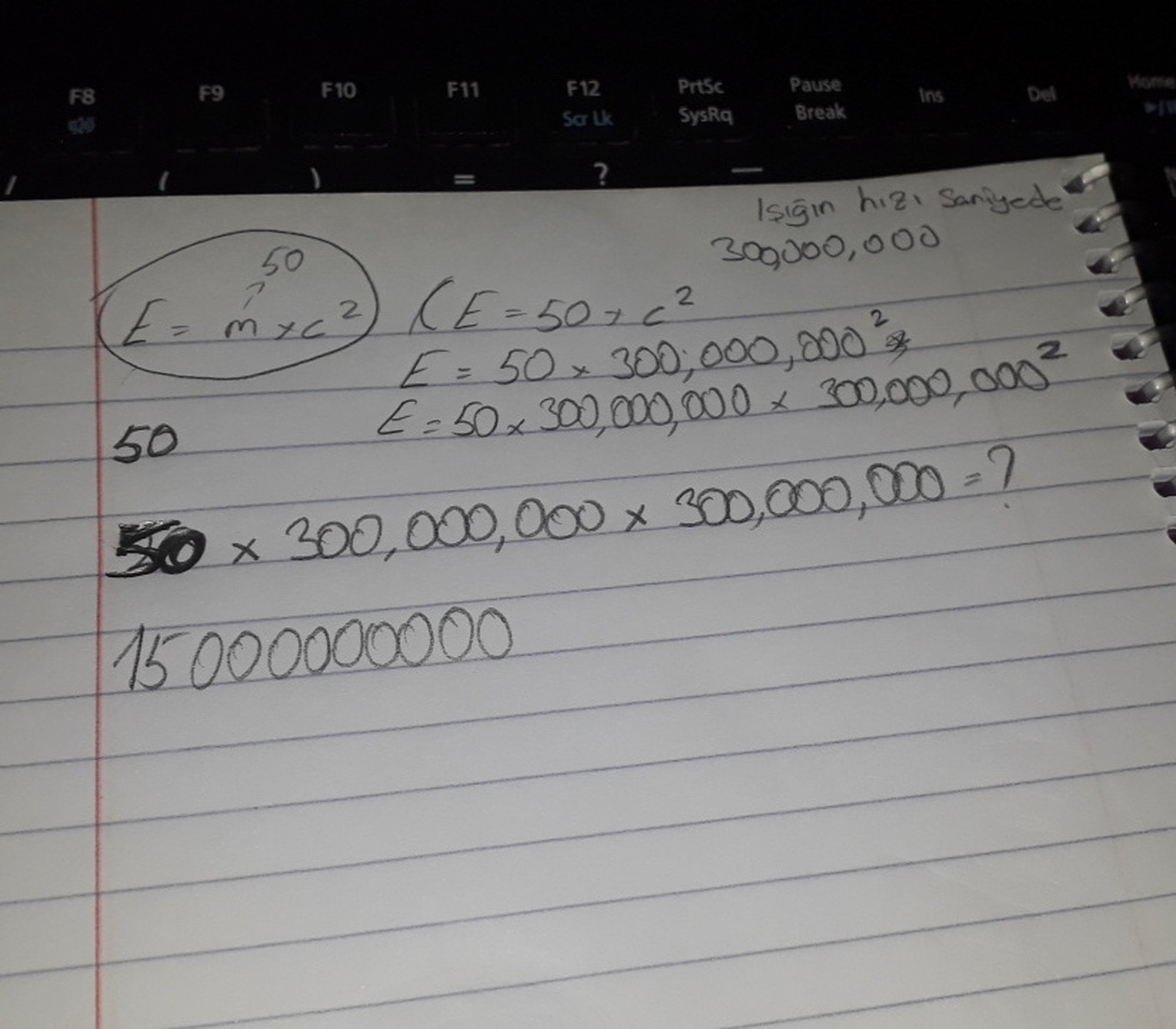 Işık hızının karesini alırken hata yapmışsın ama hiç sorun değil. Herkes çokça hatalar yapar. Aşağıdaki hesaba bakarak hatanı düzeltebilirsin.