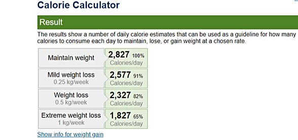 Öncelikle vücudumuzun gün içerisinde ne kadar enerji harcadığını bulmamız lazım ki ona göre beslenme kalorimizi ayarlayabilelim. Nabza göre şerbet vermek gerek ne de olsa. Kalorimizi hesaplamak için bu sitedeki boşlukları kendi bilgileriniz ile doldurarak hesapla butonuna basın, ben örnek olması adına 180 boyunca 20 yaşında ve 90 kilo bir erkek birey için aşağıya görsel koyacağım. (Hesaplama esnasında günlük aktivite düzeyi soruyor, onu da "moderate" olarak belirledim)