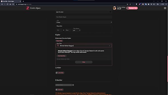 Evrim Ağacı Eser & Tavsiye Platformuna yeni bir kişi nasıl eklenir?