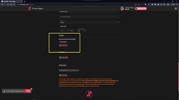 Eser Ekle sayfasına geldikten sonra Kişiler kısmına (en aşağıya) gelin.