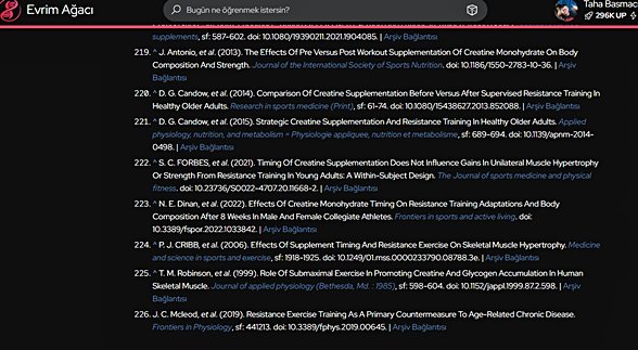 En çok mu bilmiyorum ancak geçtiğimiz yıllarda yayınladığım "Kreatin Nedir? Kreatin Takviyesi Almak Zararlı mıdır?" yazısı 226 kaynak içeriyor. Sitede bunun üstünde daha fazla kaynağa sahip bir yazı göremedim henüz. Ayrıca "Evrim Ağacı'nda İçerik Yayınlamak İsteyenlerin İzlemesi Gereken Adımlar" yazısında da kaynak ekleme sınırına dair bir bilgi bulamadım.