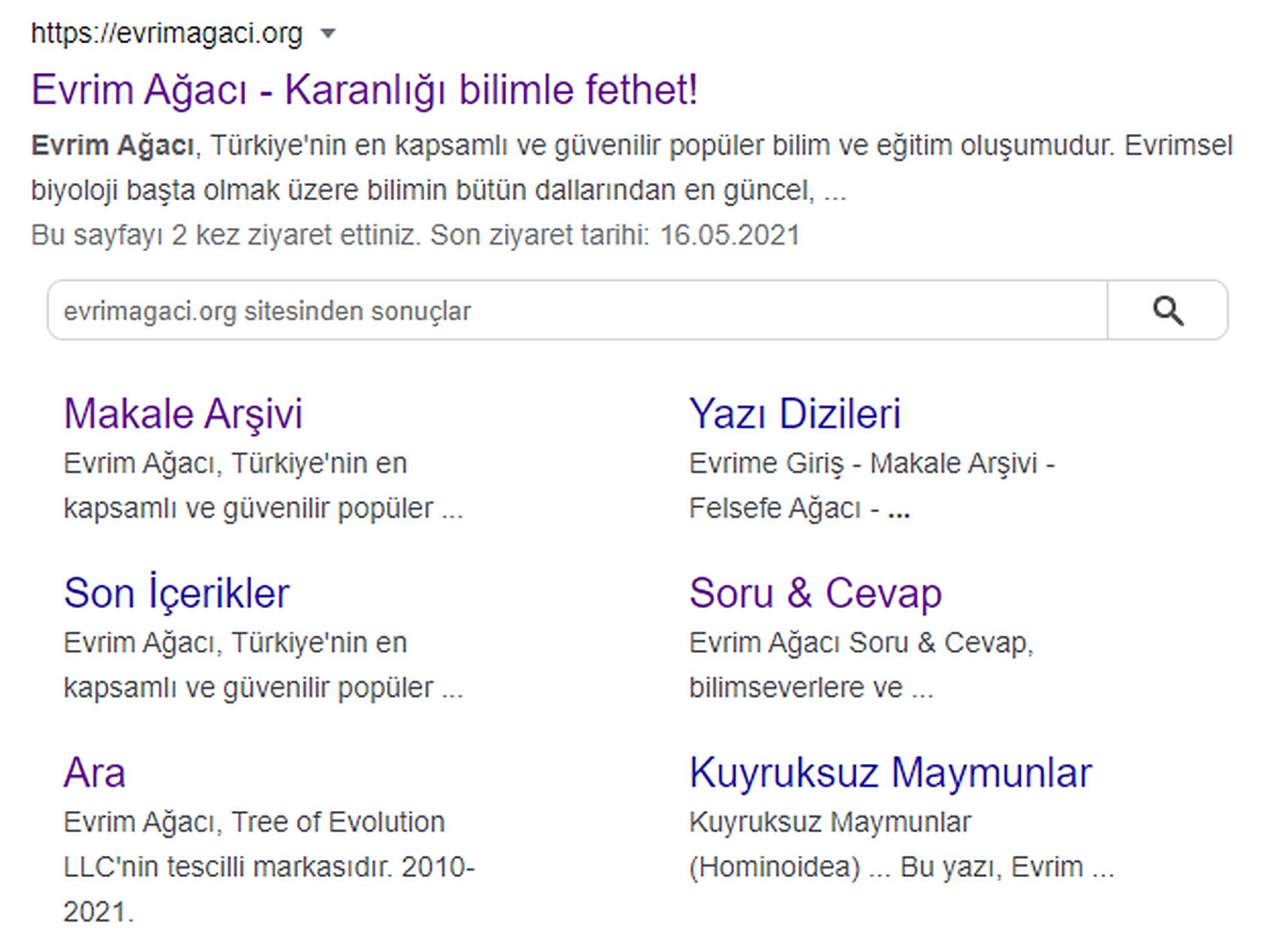 Örneğin Google'a Evrim Ağacı yazdığımızda, arama kısmı ve site sayfalarını gösteren bir menü çıkıyor. Bunu nasıl ayarlayabilirim?