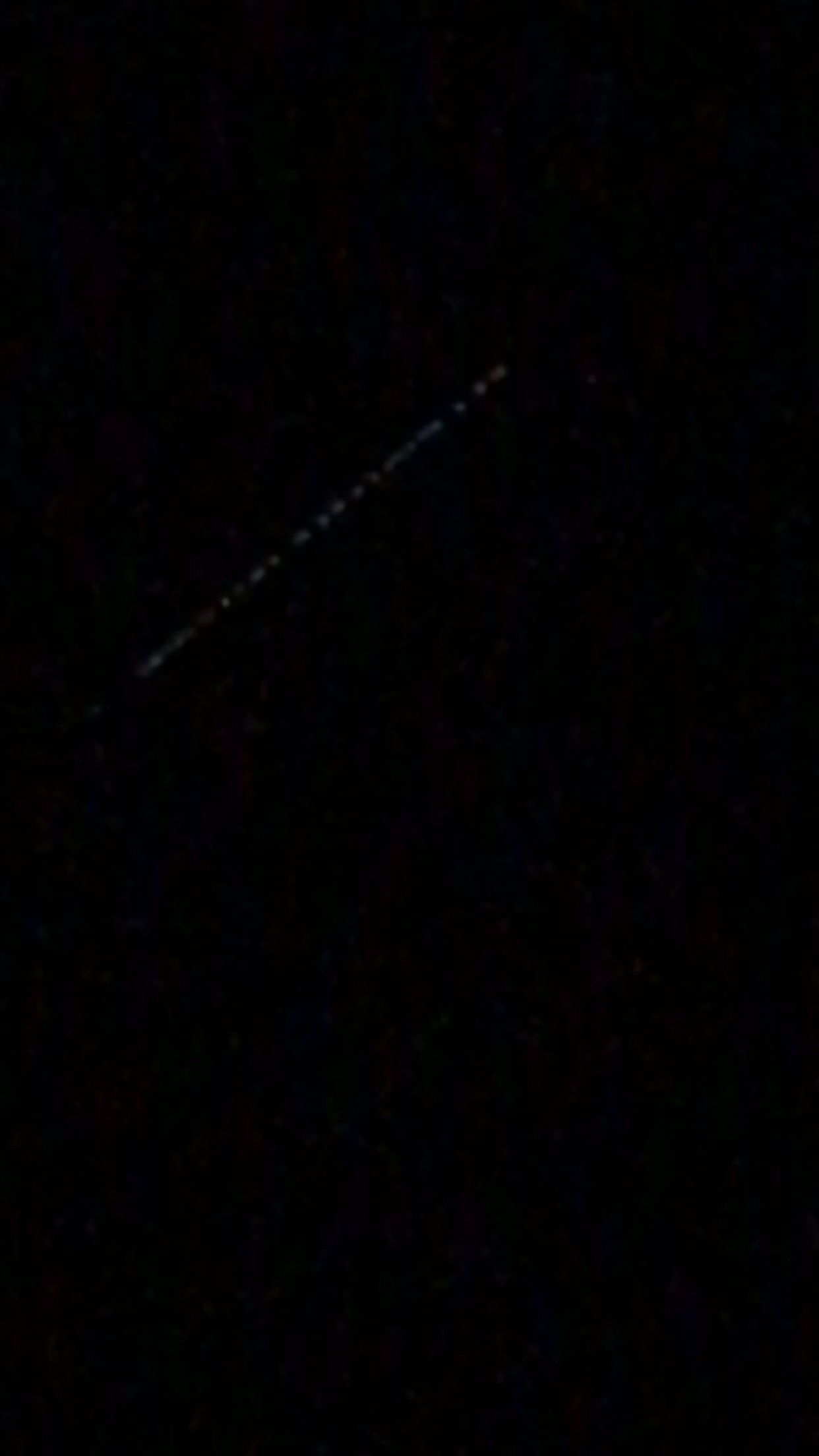 Bugün yürüyüş yaparken gökte bu şekilde yakından uçan, büyük ve treni andıran ışıklı bir cisim fark ettim. Kameramın kötülüğünü mazur görün sadece ışığı gözüküyor. Şekli tam olarak trene benziyordu ve ortada bu şekilde ışıklar geçiyordu. Birkaç saniye sonra ışıkları söndü ve gözden kayboldu. Sizce bu ne olabilir?