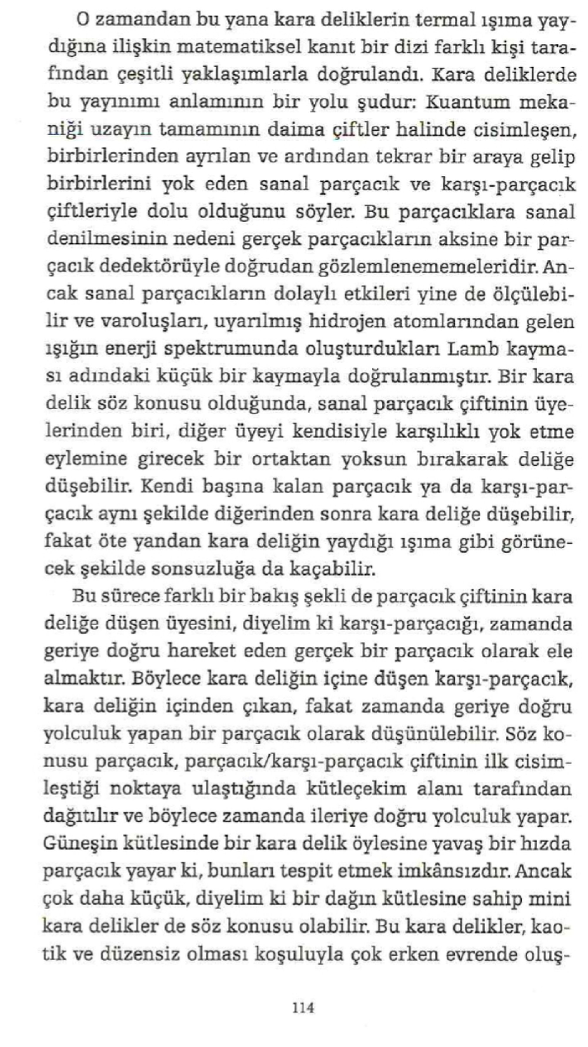 Alıntı yaptığınız kitabı ben de okudum. Hawking, karadelikler konusunda çok önemli çalışmalara imza atmış bir biliminsanı. Burada da çalışmalarının gösterdiği olası gerçeklerden bahsediyor.